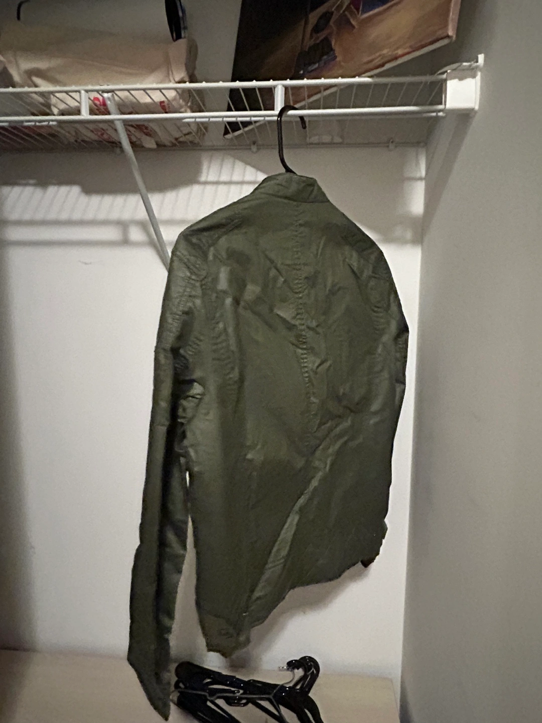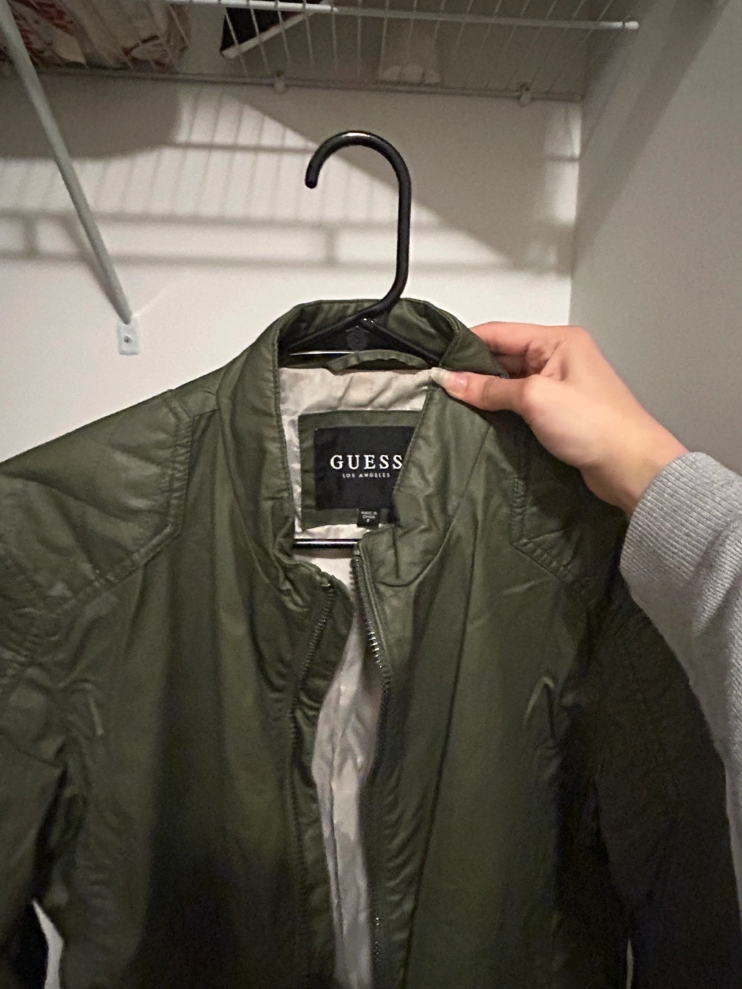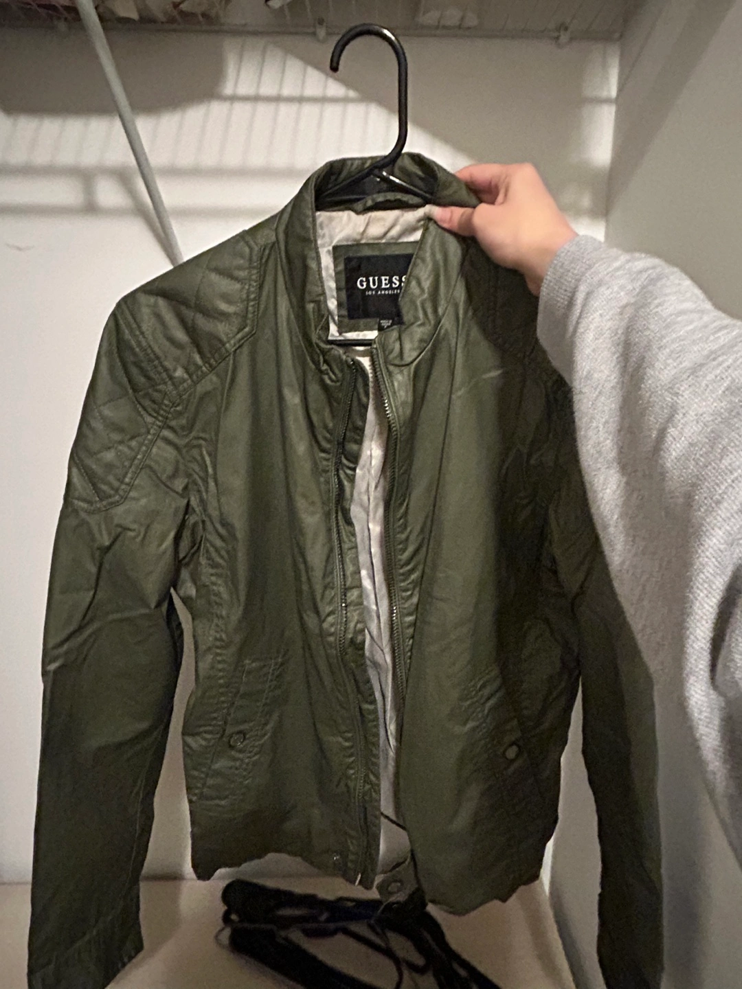 Here's a stylish Guess jacket in a unique olive green colour! It's perfect for adding a touch of sophistication to your wardrobe. The jacket is in good condition and ready for a new home. Never worn before