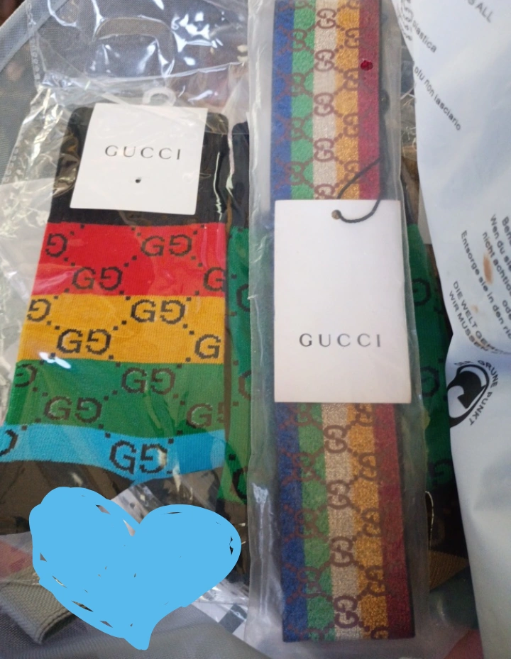 Selling a brand new set of Gucci socks and a headband! Both items are still in their original packaging and feature the iconic Gucci logo pattern with a colorful design. Perfect for adding a touch of luxury to your everyday style