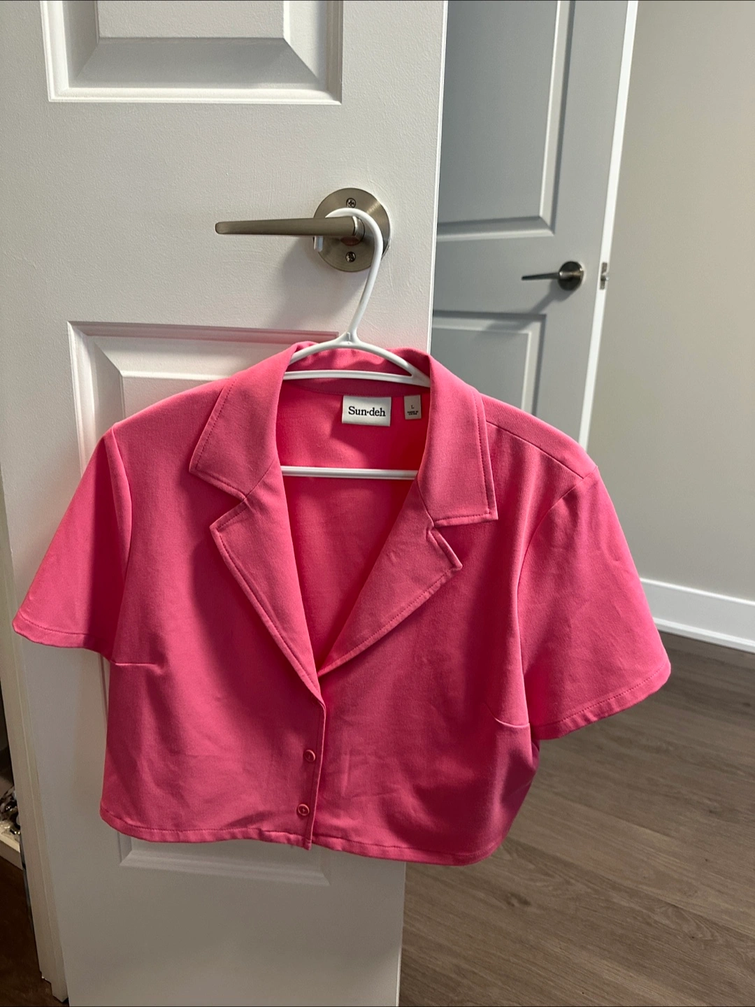 Selling a cute Sun-deh cropped jacket in a lovely pink colour! It's a size large and in great condition. Perfect for adding a pop of colour to your wardrobe!
