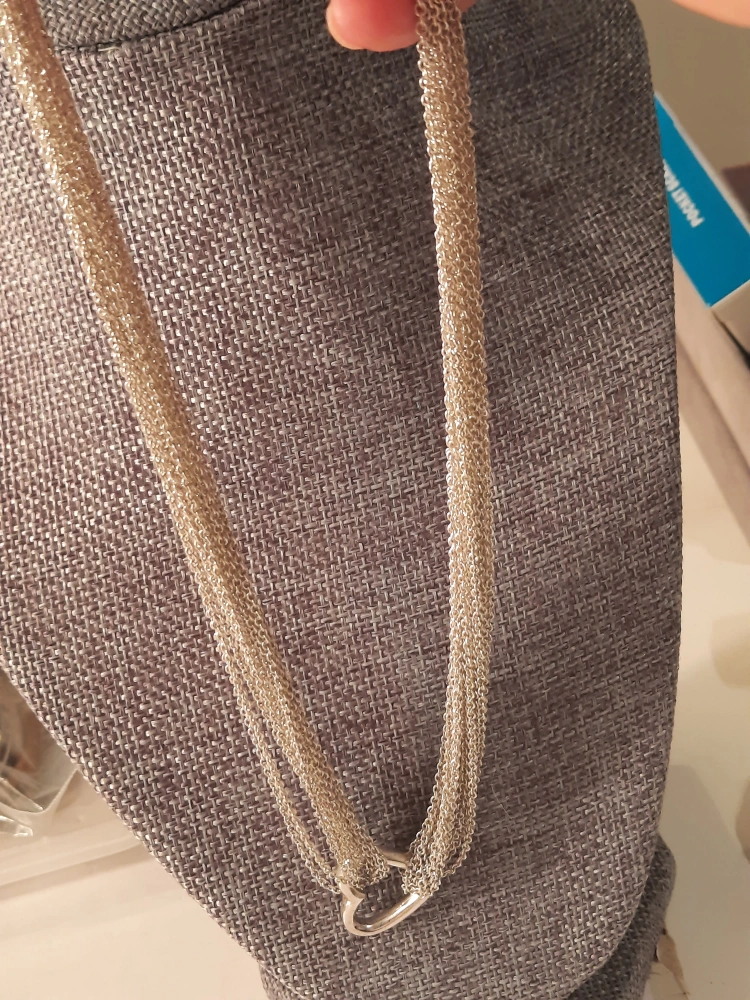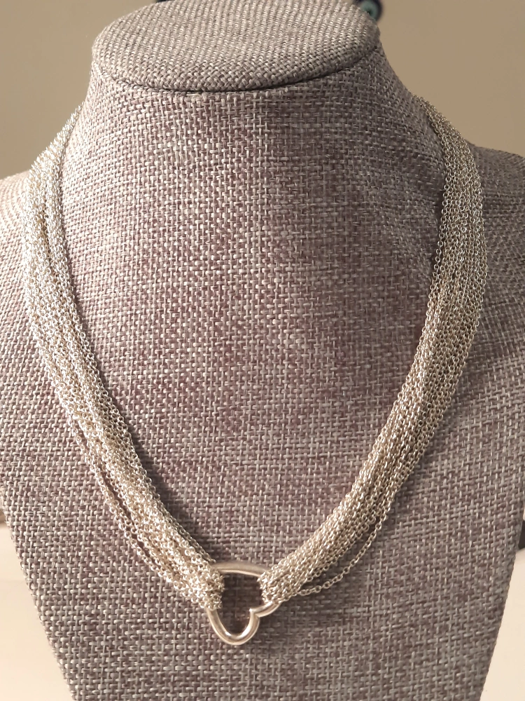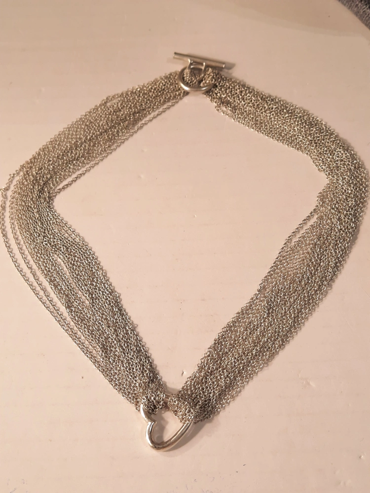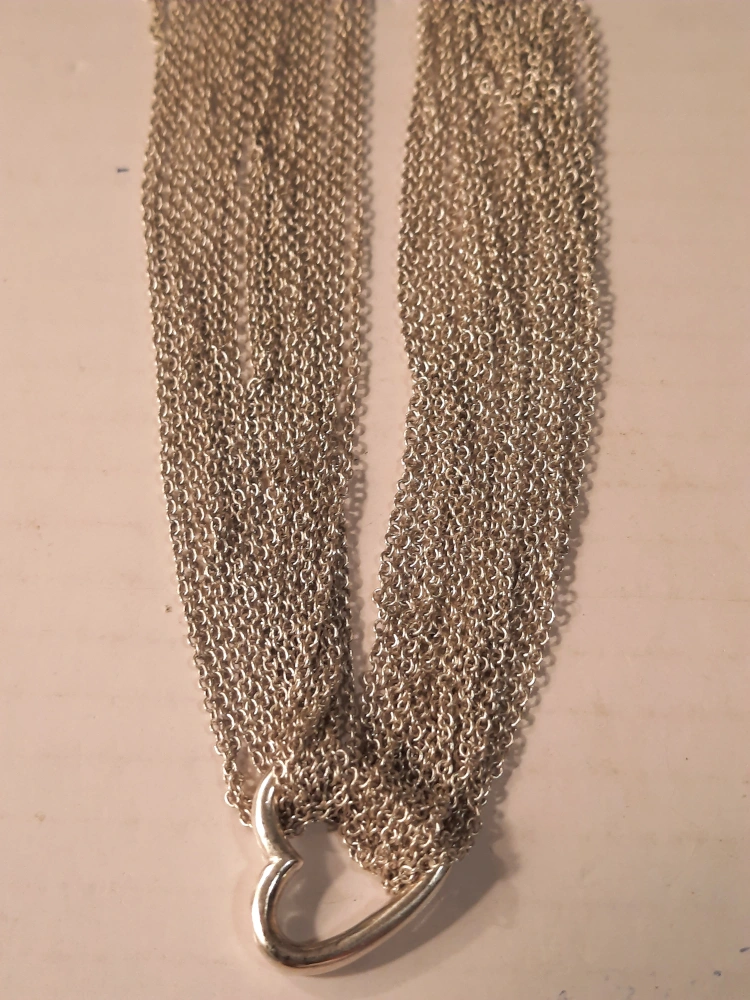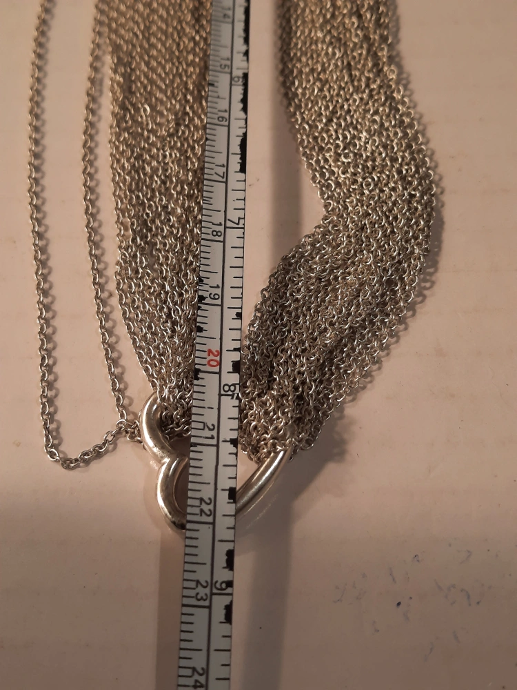 Selling a lovely Tiffany & Co. heart necklace! It's a beautiful silver colour and measures about 20 inches in length. The heart pendant is marked "Tiffany & Co., Mexico 925". It's in great condition and ready to be worn!
