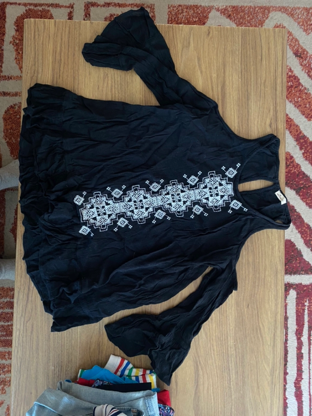 Hollister Black Embroidered Bell Sleeve Top