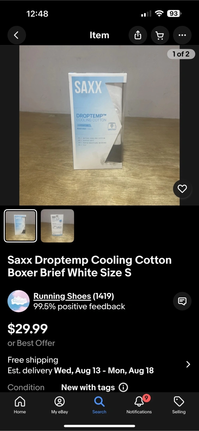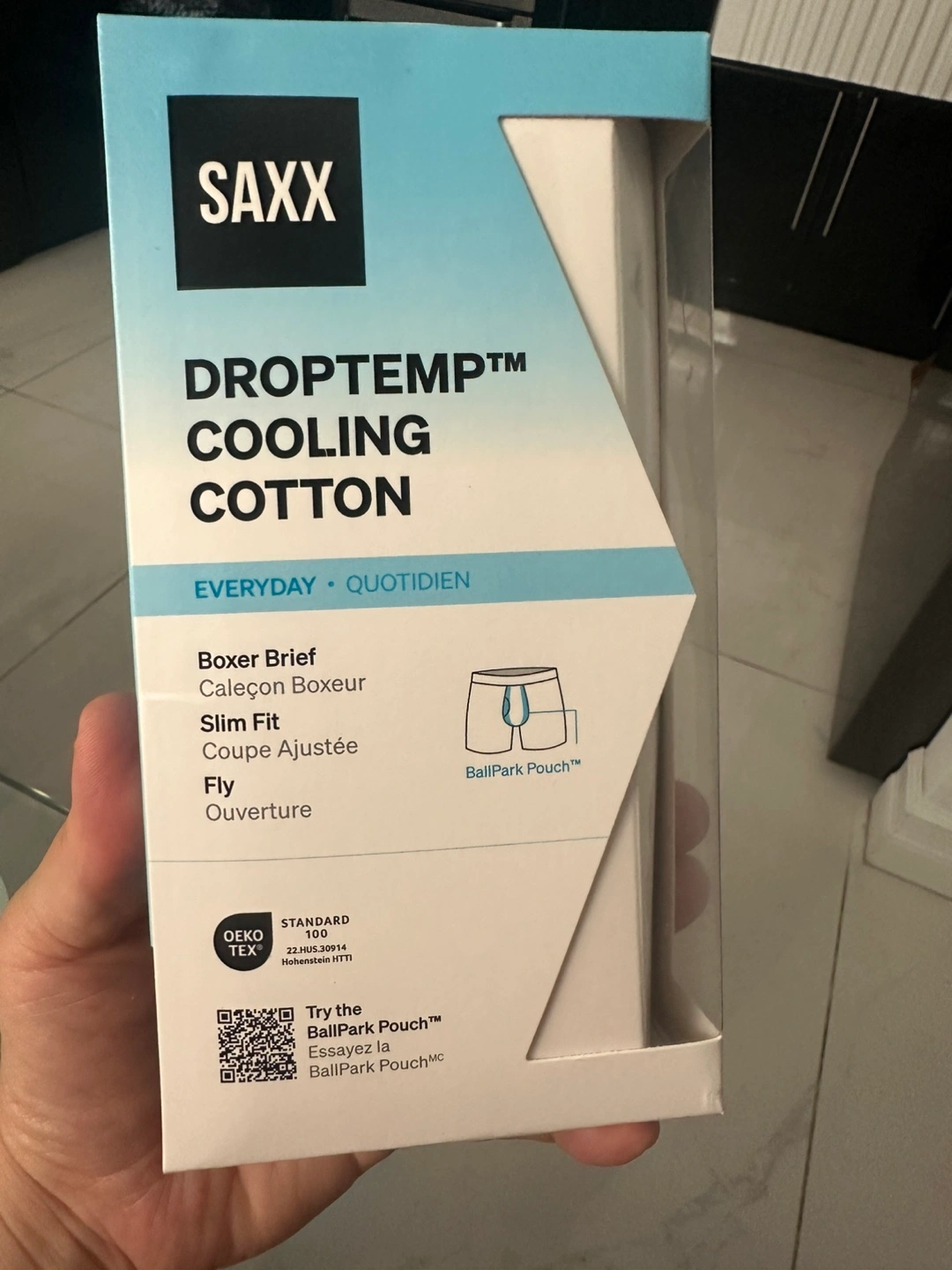 Selling a new pair of SAXX DropTemp Cooling Cotton Boxer Briefs in size S! These are designed for everyday wear and feature: