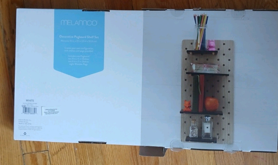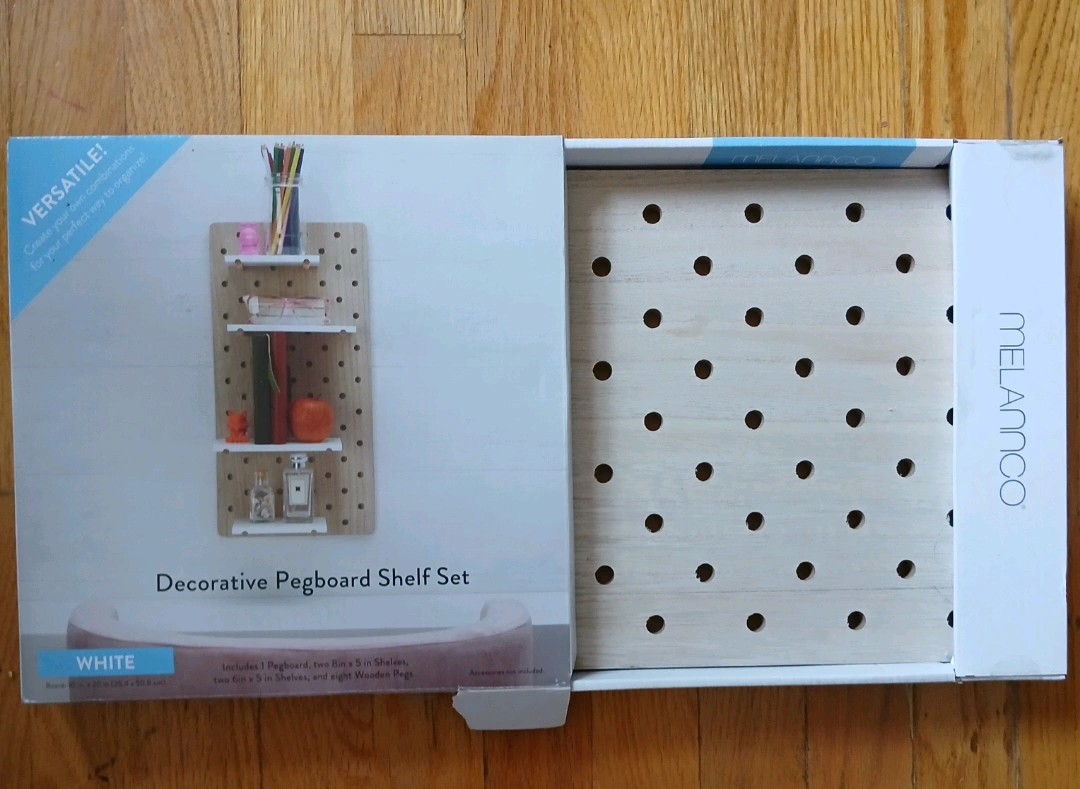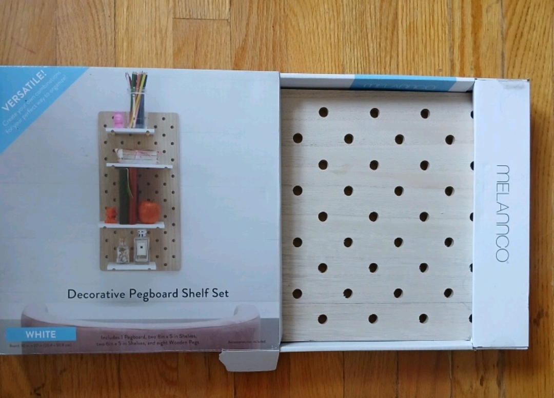 15Selling a Melannco Decorative Pegboard Shelf Set in white!. It's a versatile way to organize your space and create your own configurations!