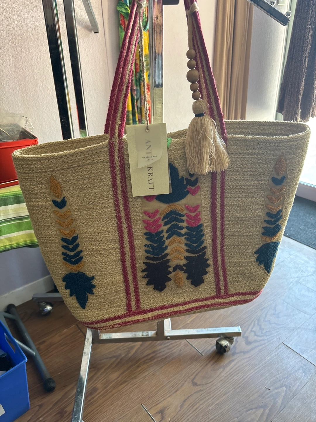 Looking to sell this stylish hand-made tote bag from ANTIK KRAFT. It's perfect for carrying your everyday essentials with a unique, artisanal flair. The design features a lovely combination of textures and patterns, making it a standout piece!