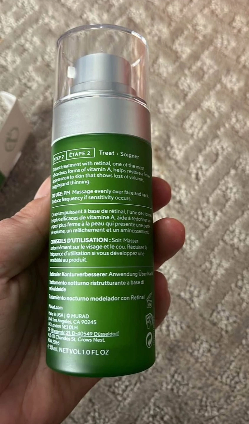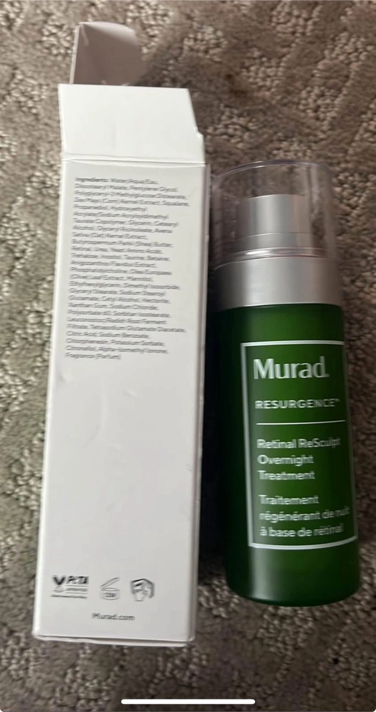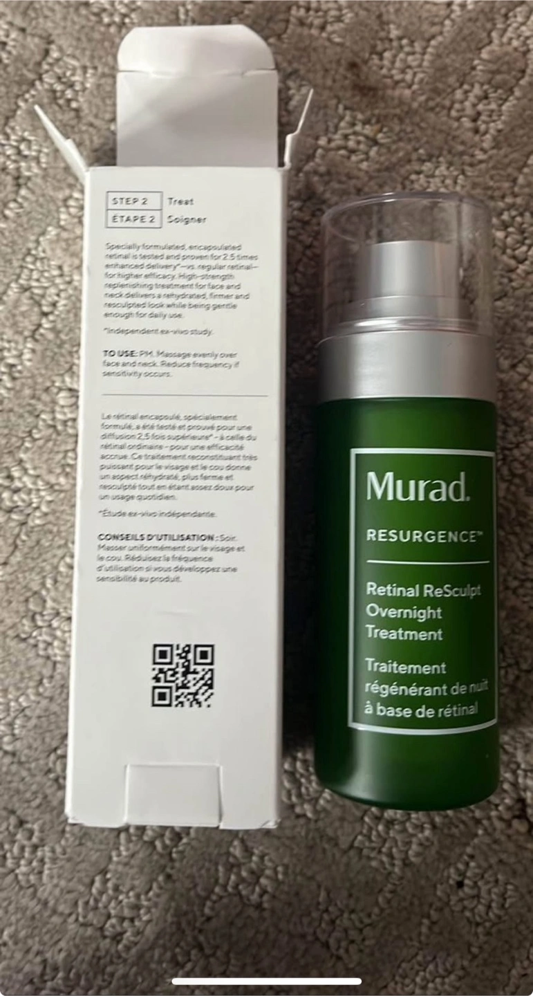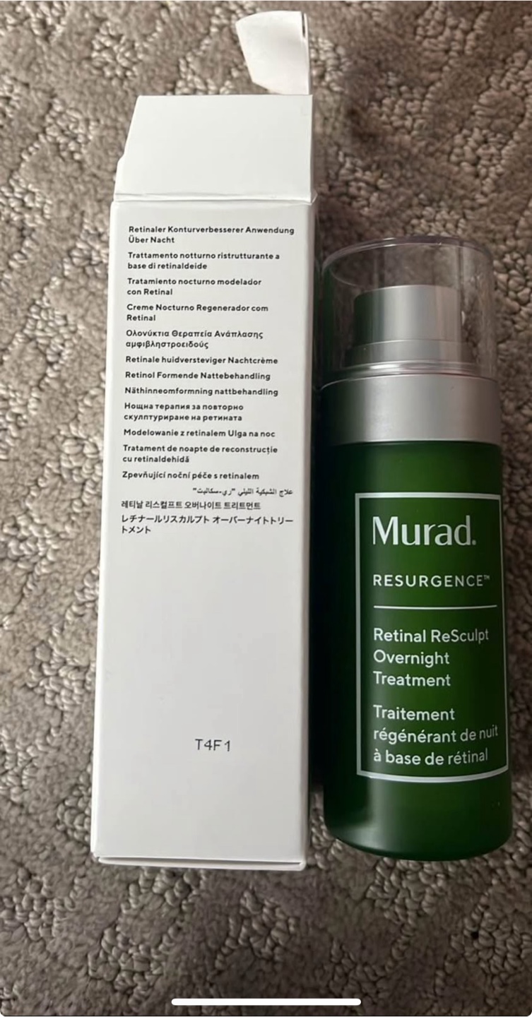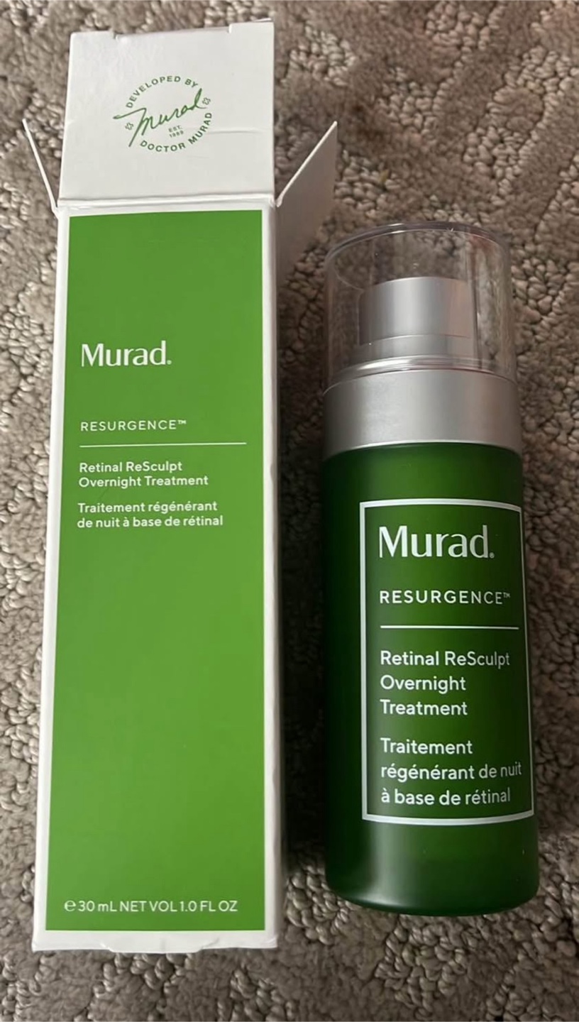 I'm selling a Murad Retinal ReSculpt Overnight Treatment. This treatment is designed to rejuvenate your skin while you sleep, leaving it looking refreshed and revitalized. The box is included, ensuring it's well-protected. It comes in a 30mL bottle.