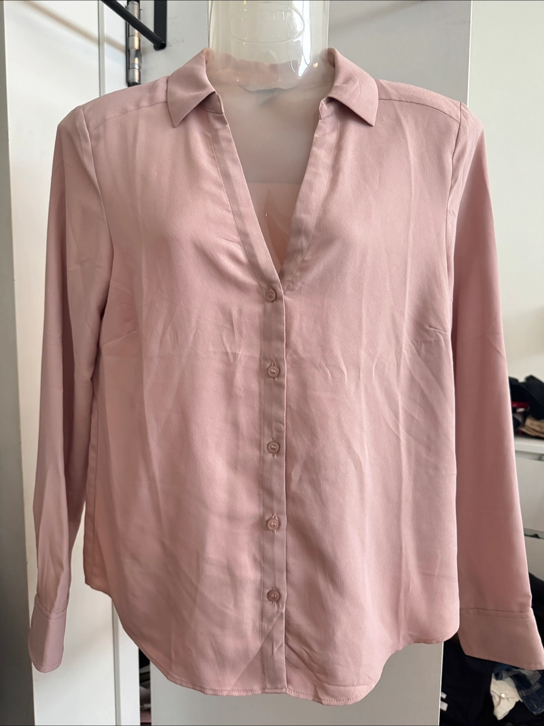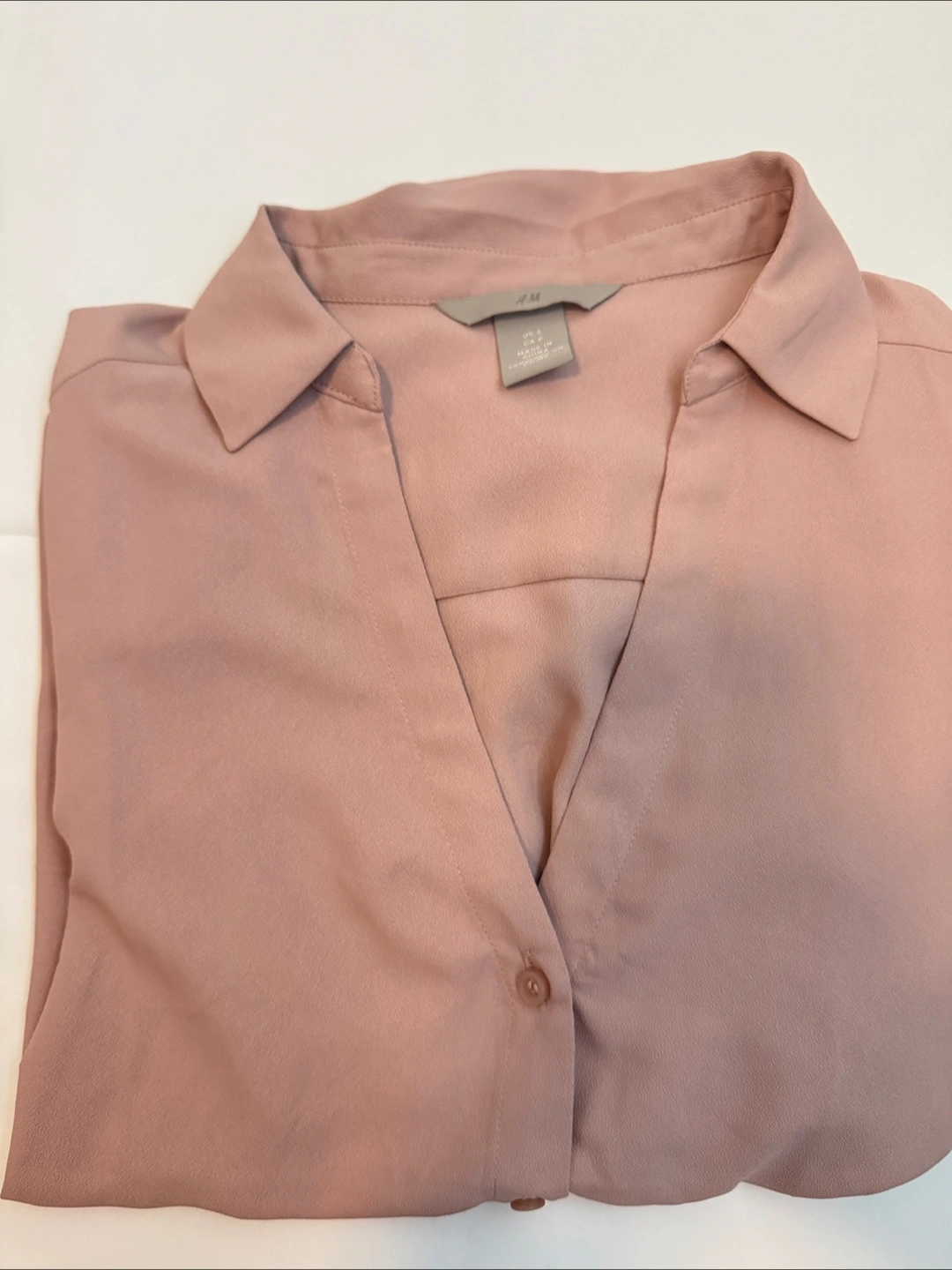 Pink button-up blouse from H&M! It's a size small and in great condition. Perfect for adding a touch of colour to your wardrobe.