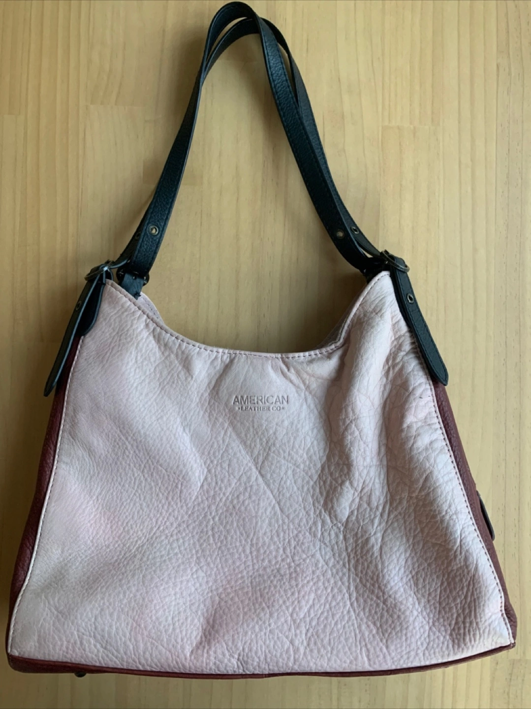 Gently used American Leather Co. shoulder bag in a lovely pink and burgundy colour combination. It's in great shape and ready for a new home!