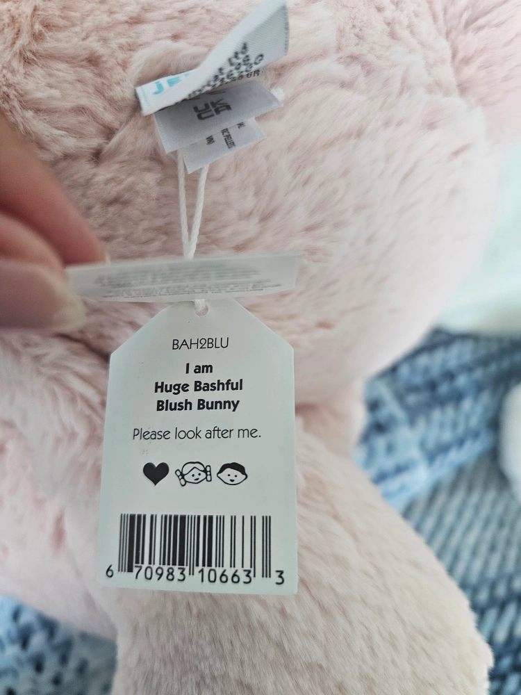 Selling a brand new Jellycat Huge Bashful Blush Bunny! It's super soft and cuddly. This bunny is in excellent condition with tags still attached. It's a lovely blush colour and ready for a new home