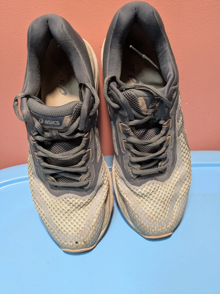 Selling a pair of Asics Gel-Kayano 25 running shoes in grey! They're in fair condition and ready for a new home. Size US 10