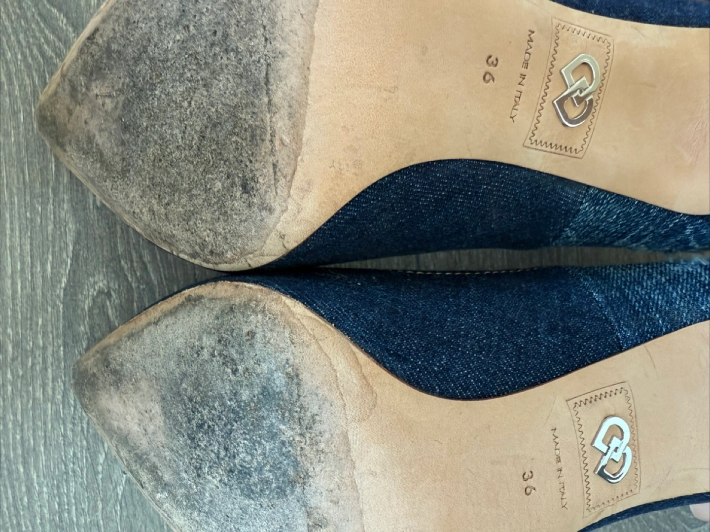 Selling a pair of Dsquared2 denim heels. They are a European size 36. Please note the wear on the heels.