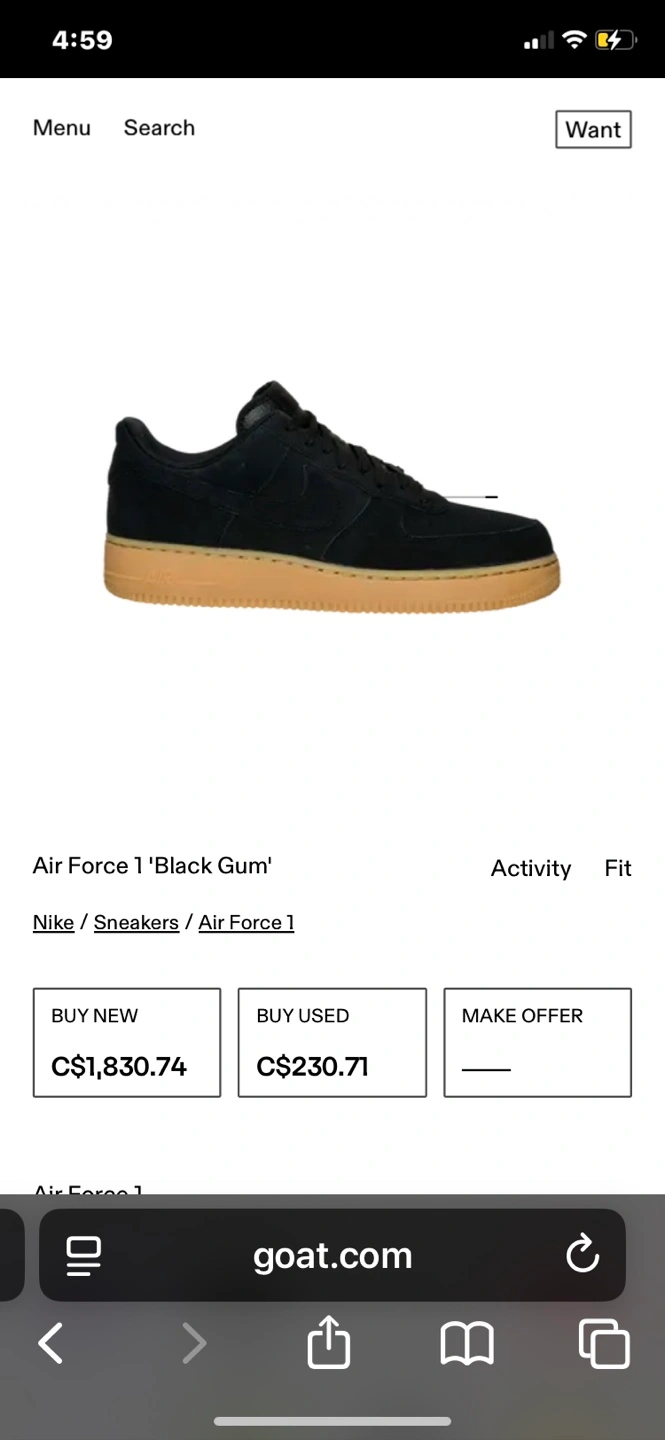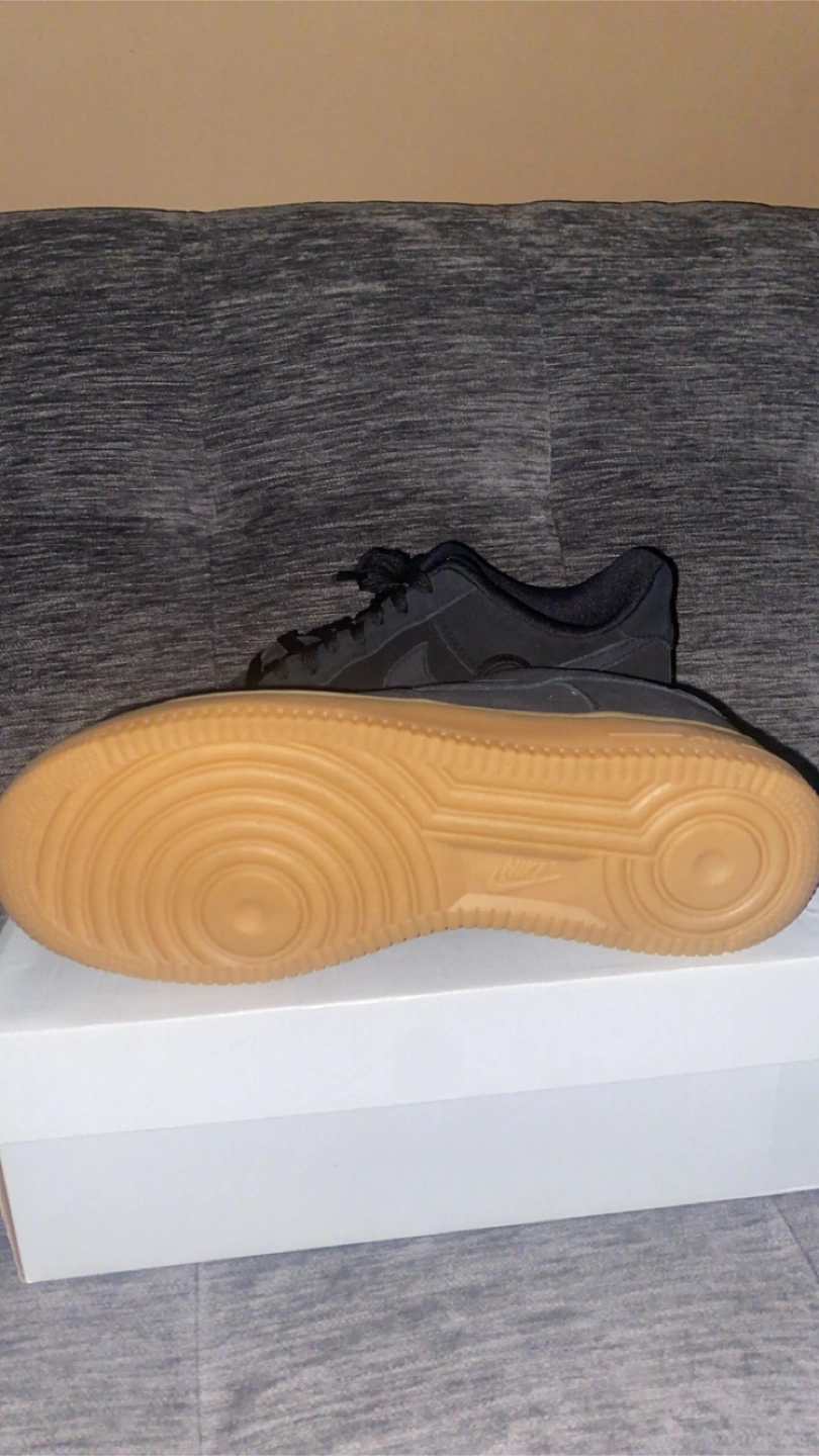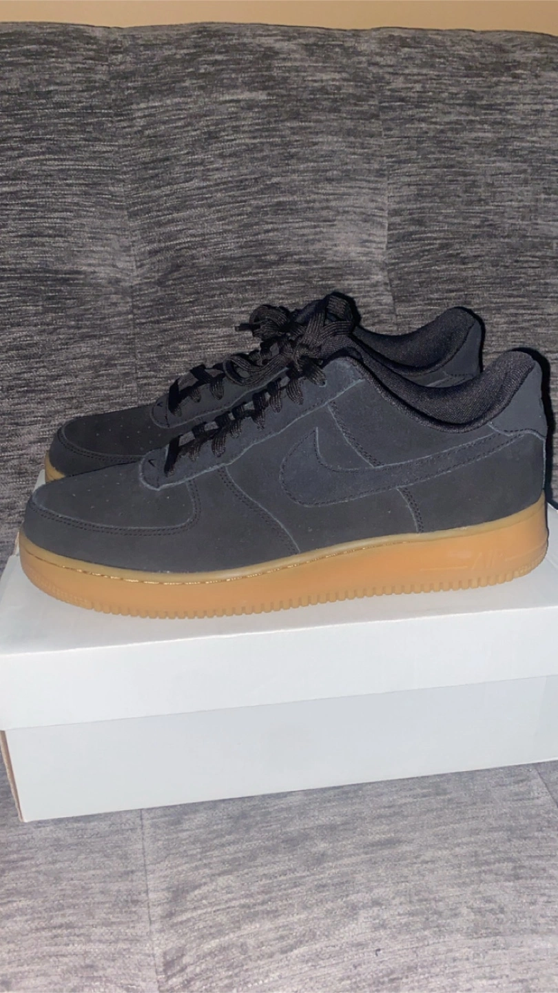 Selling a pair of Nike Air Force 1 'Black Gum' sneakers. They are in great condition and come with the original box. A stylish and comfortable choice for everyday wear!