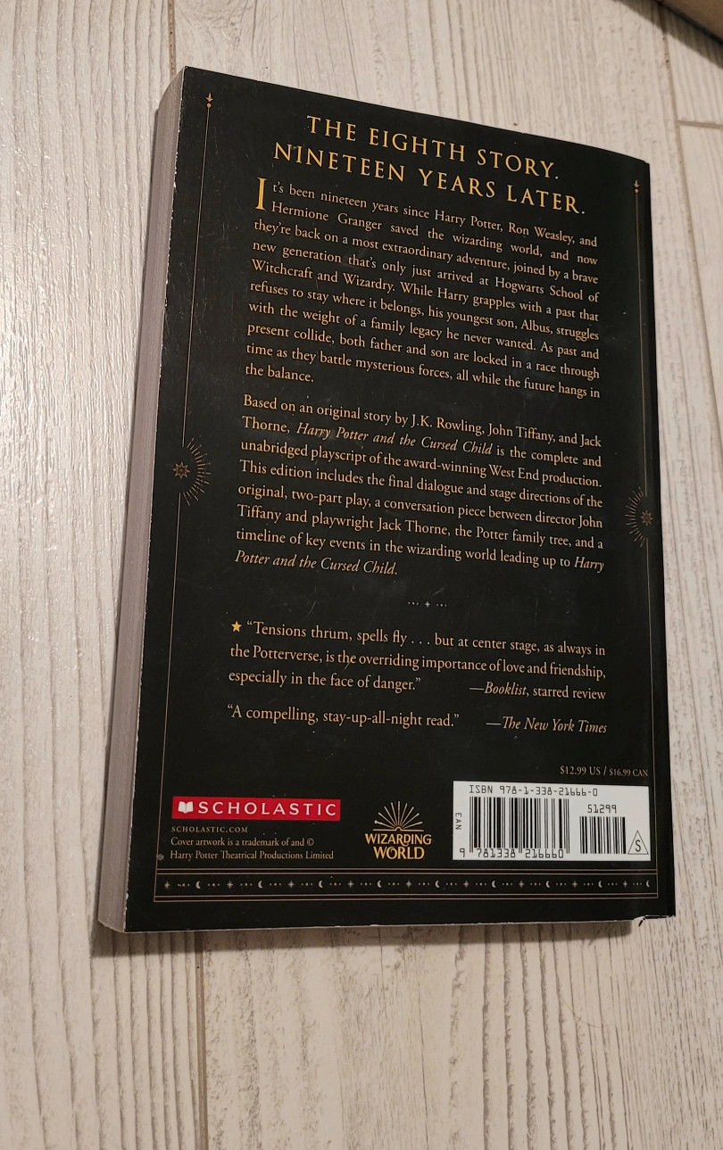 Selling Harry Potter and the Cursed Child, the original production playscript by J.K. Rowling, John Tiffany, and Jack Thorne. It's the eighth story, nineteen years later!