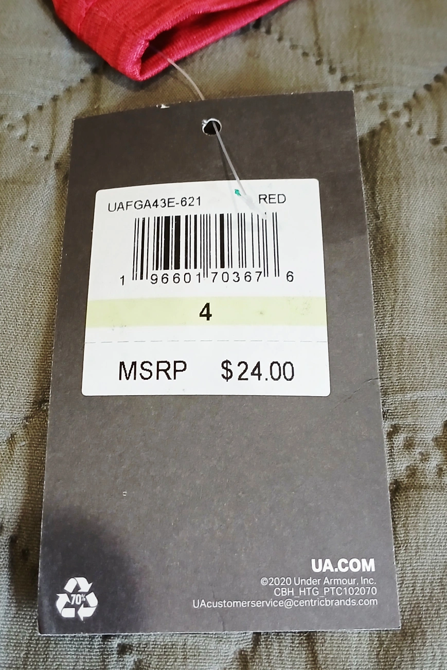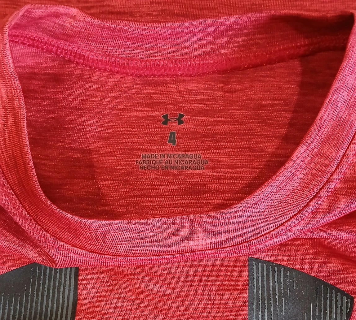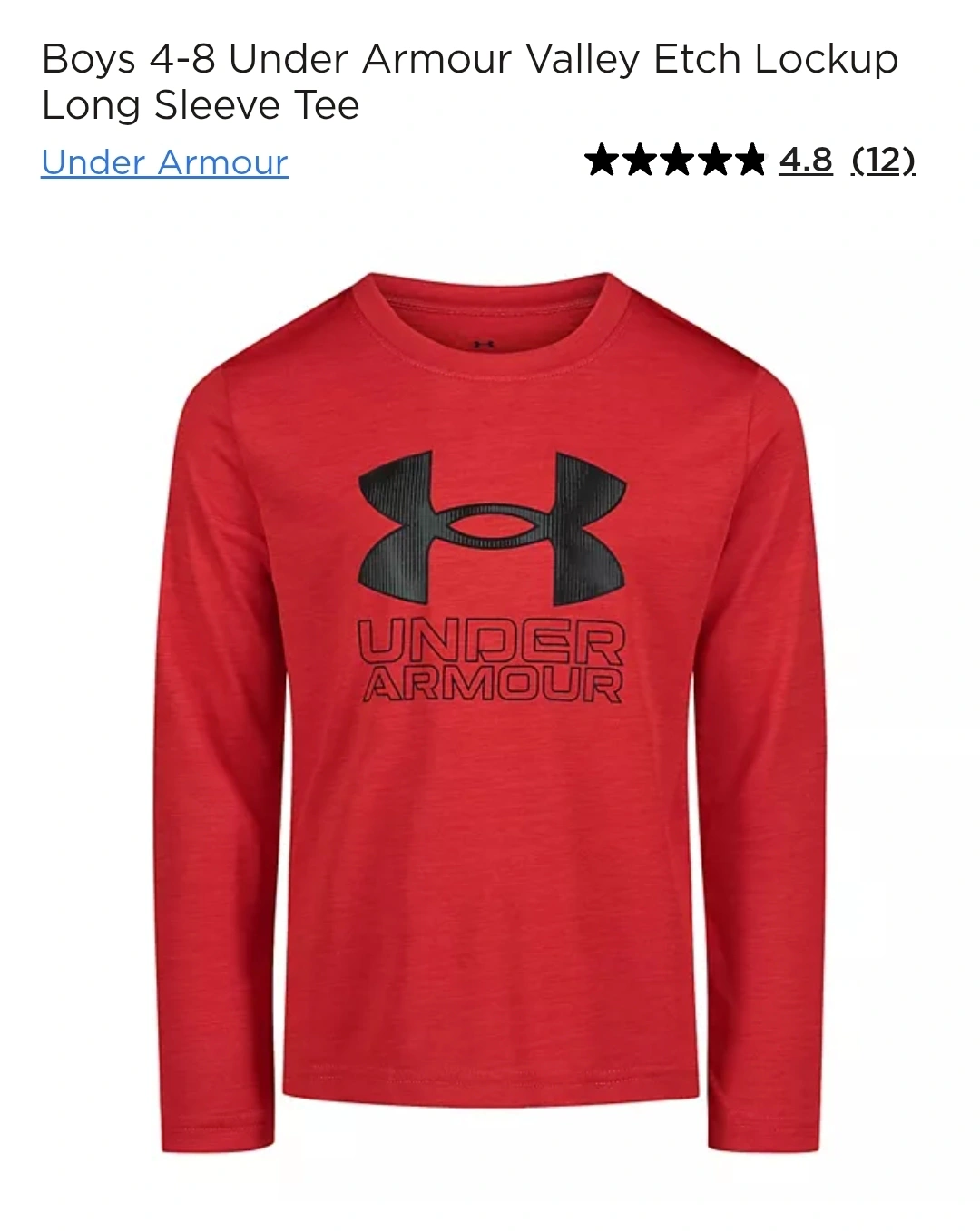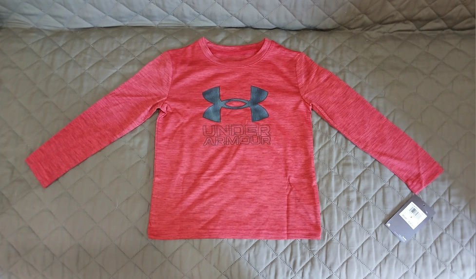 Here's a red Under Armour long sleeve tee for a boy, size 4.
