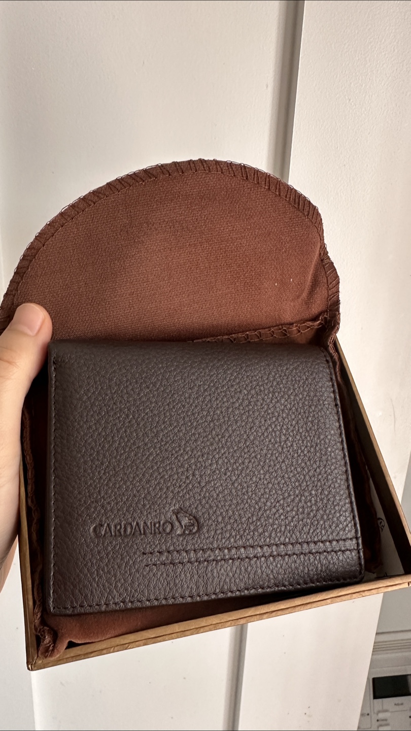 Selling a Cardanro brown leather wallet! It comes with its original box and a protective pouch. The wallet is brand new in great condition and has plenty of slots for cards and cash