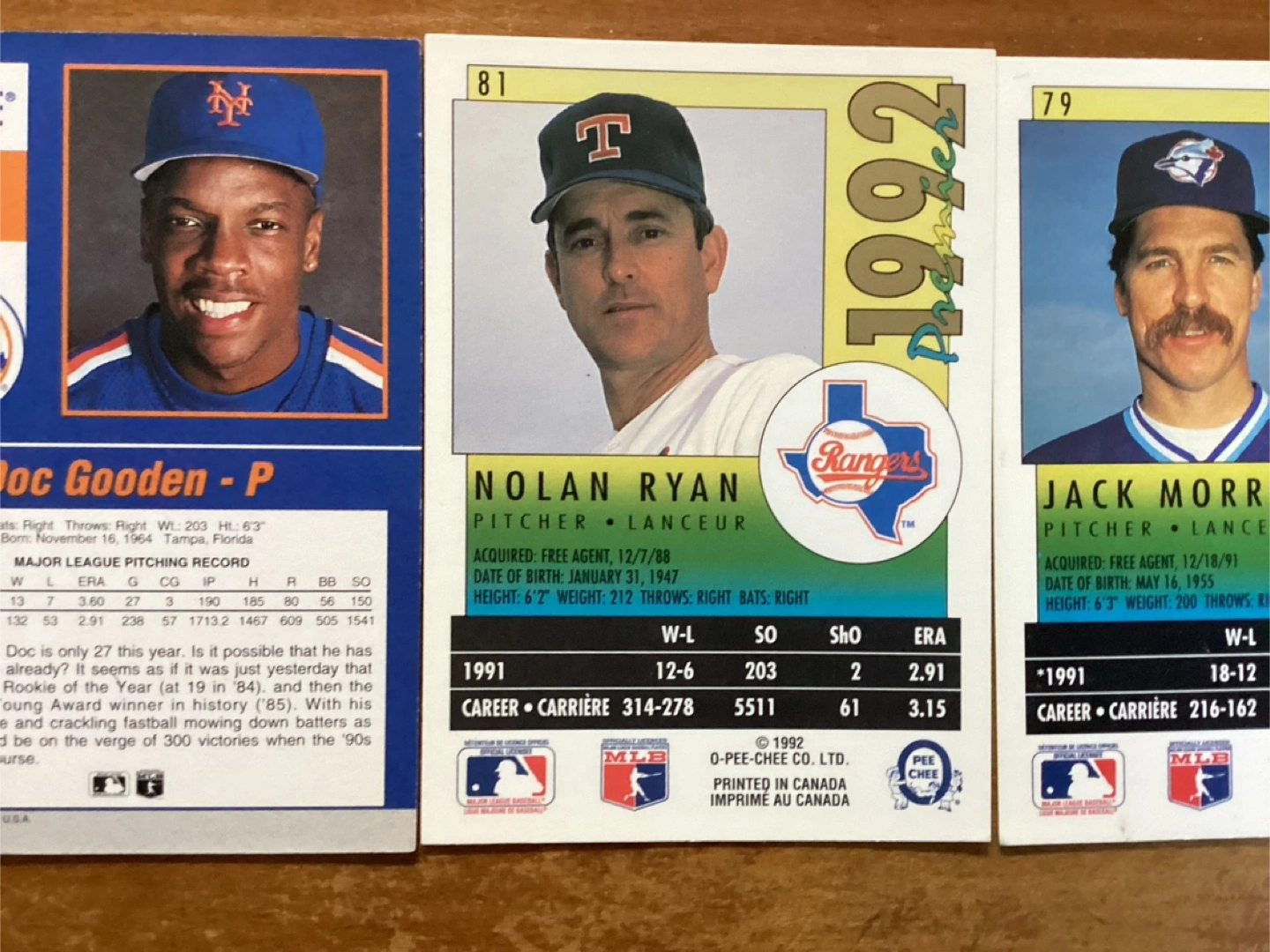 1992 SCORE DOC GOODEN, OPC NOLAN RYAN & JACK MORRIS Cards