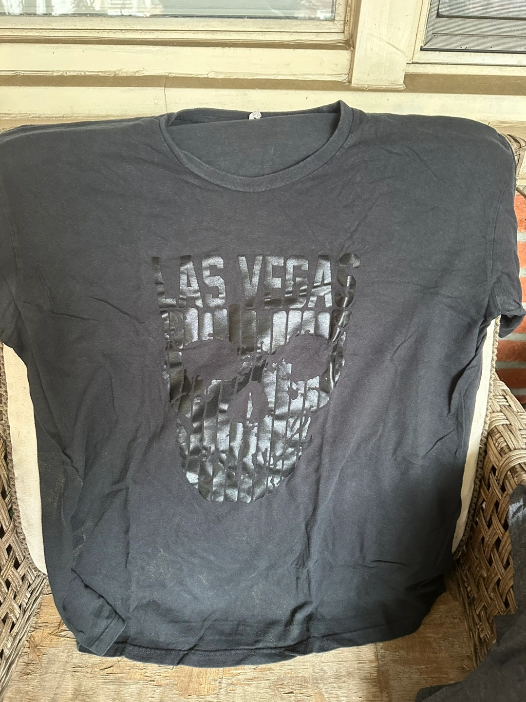 Selling a black Alstyle t-shirt with a Las Vegas skull design. It's a size 2XL and made by Alstyle by Switcher. Great for anyone who loves Vegas! Clean up my closet.