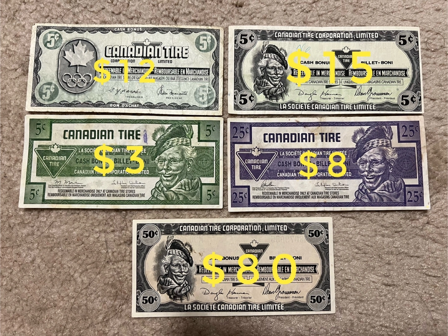Selling a collection of vintage Canadian Tire money! A fun piece of Canadian history and a great addition to any collection.