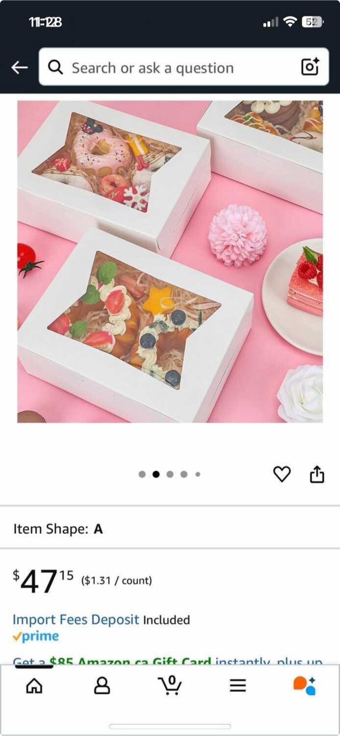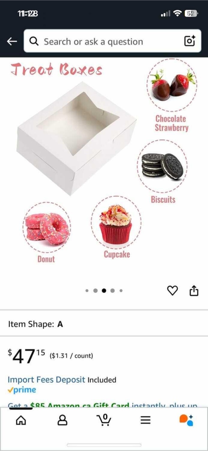 I'm selling a set of 36 treat boxes! These are brand new and still in their original packaging. Great for presenting donuts, cupcakes, cookies, and other treats.