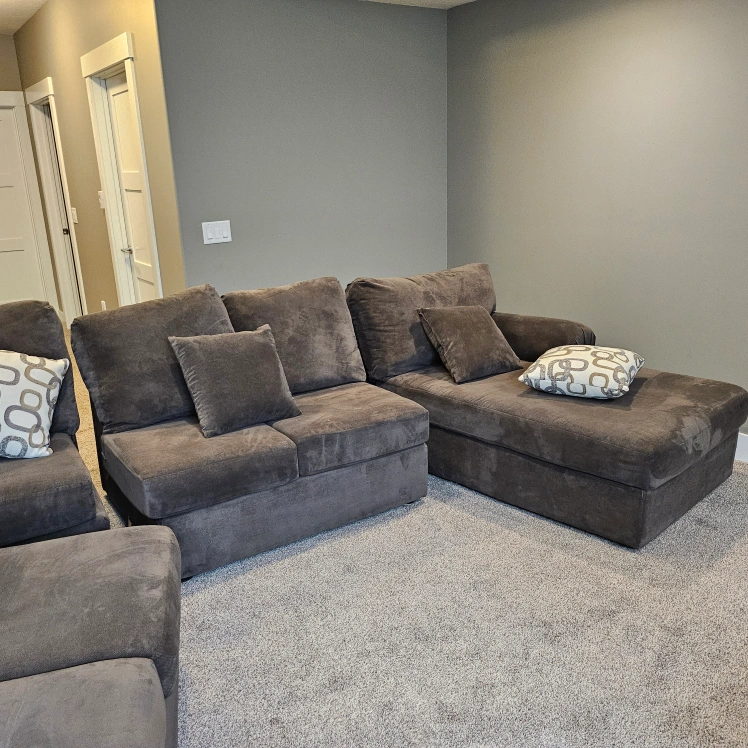 Grey Sectional couch with pillows - on hold
