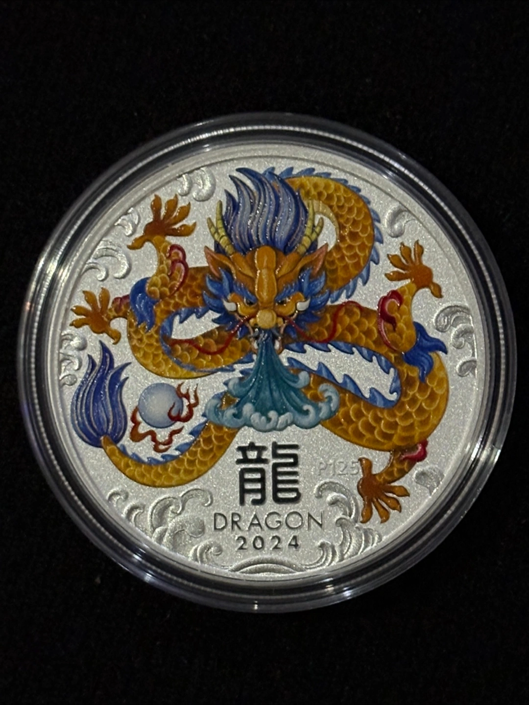 Selling a beautiful 2024 Australian Dragon 1oz Silver Coin. The coin features a stunning design of a dragon on one side and Queen Elizabeth II on the other. It's in great condition and comes in a protective case.