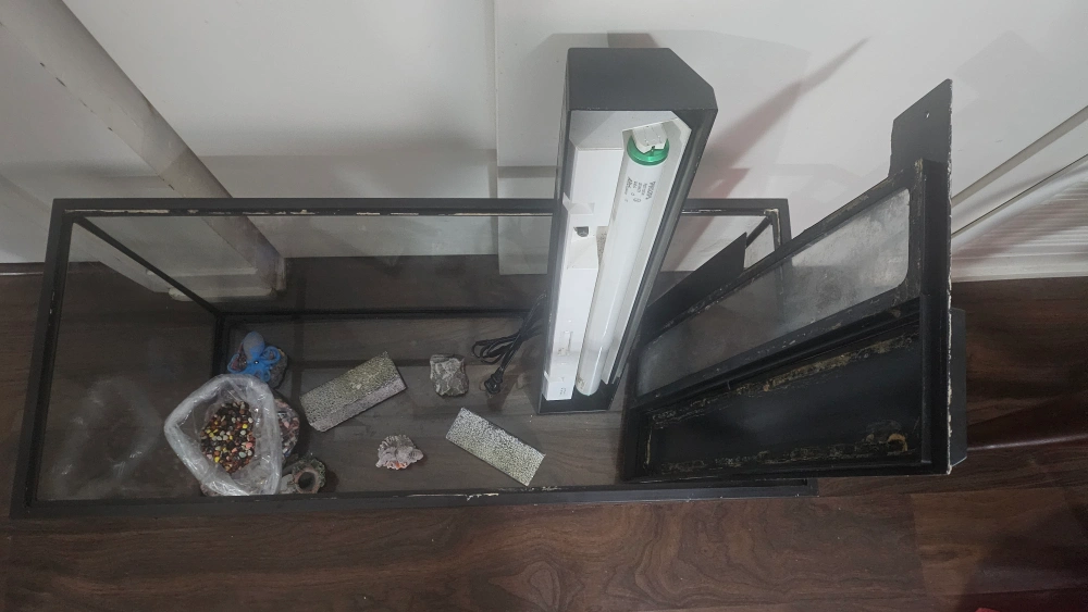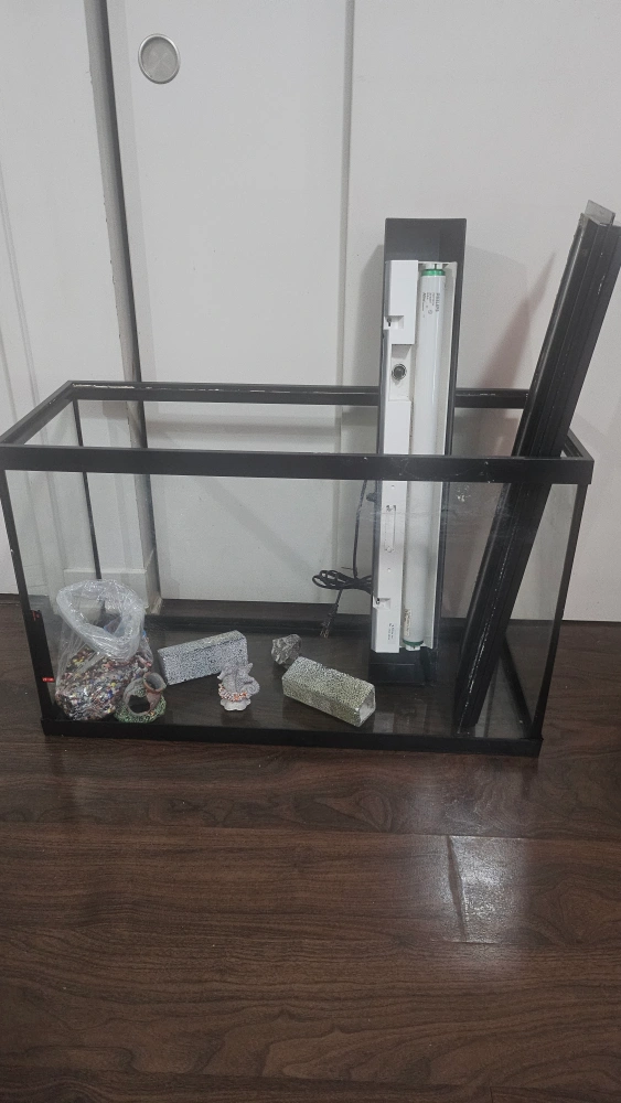 Selling a used fish tank that comes with a light and some accessories. It's perfect for someone just starting out or looking to upgrade their current setup. The tank is in good condition and ready for a new home!