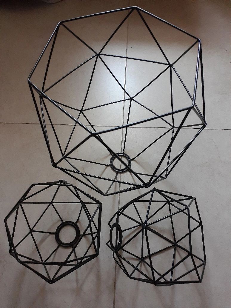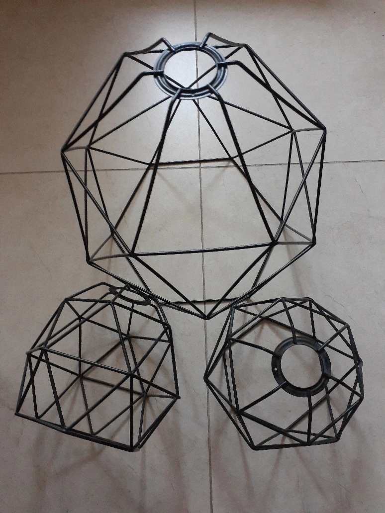 Brand New all 3 for $30 Pendant lamp shades Large size is 16 by 10 inches 2 small are 8 by 6 inches can even be use used over planter for growing vines. very sturdy black metal.