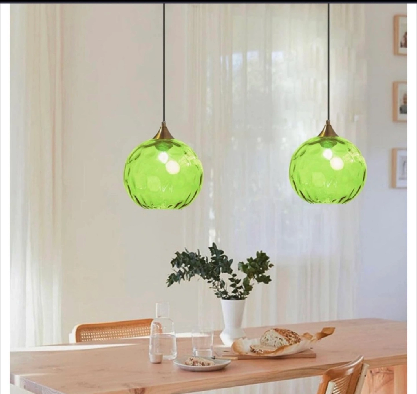 Set of 2- Green Ripple Glass Globe Pendant Light Fixture
