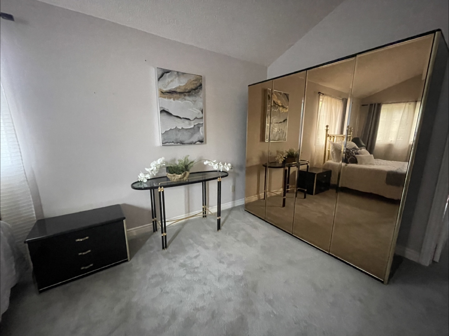 Includes wardrobe, set of drawers, side tables, matching mirrors and hallway table.