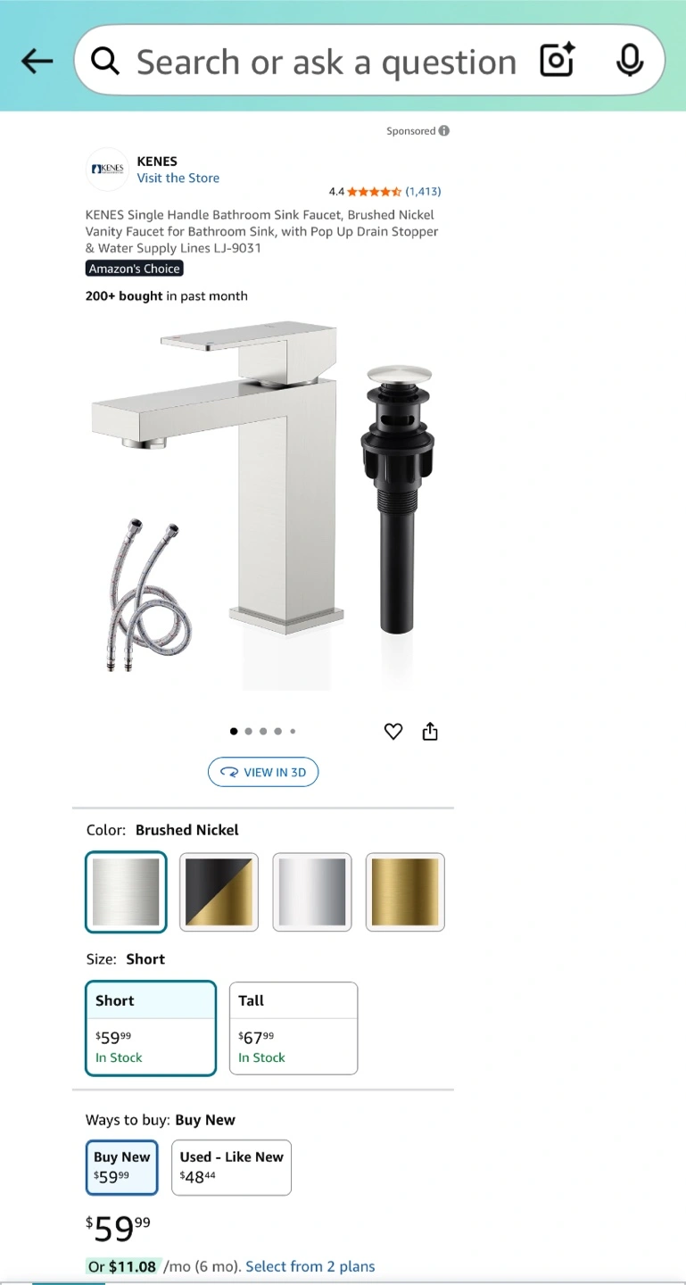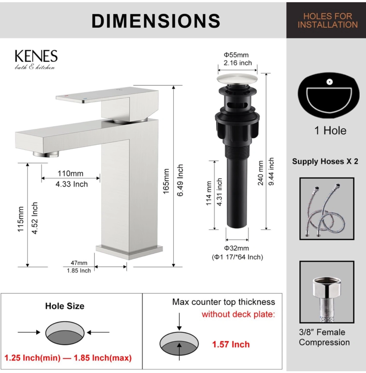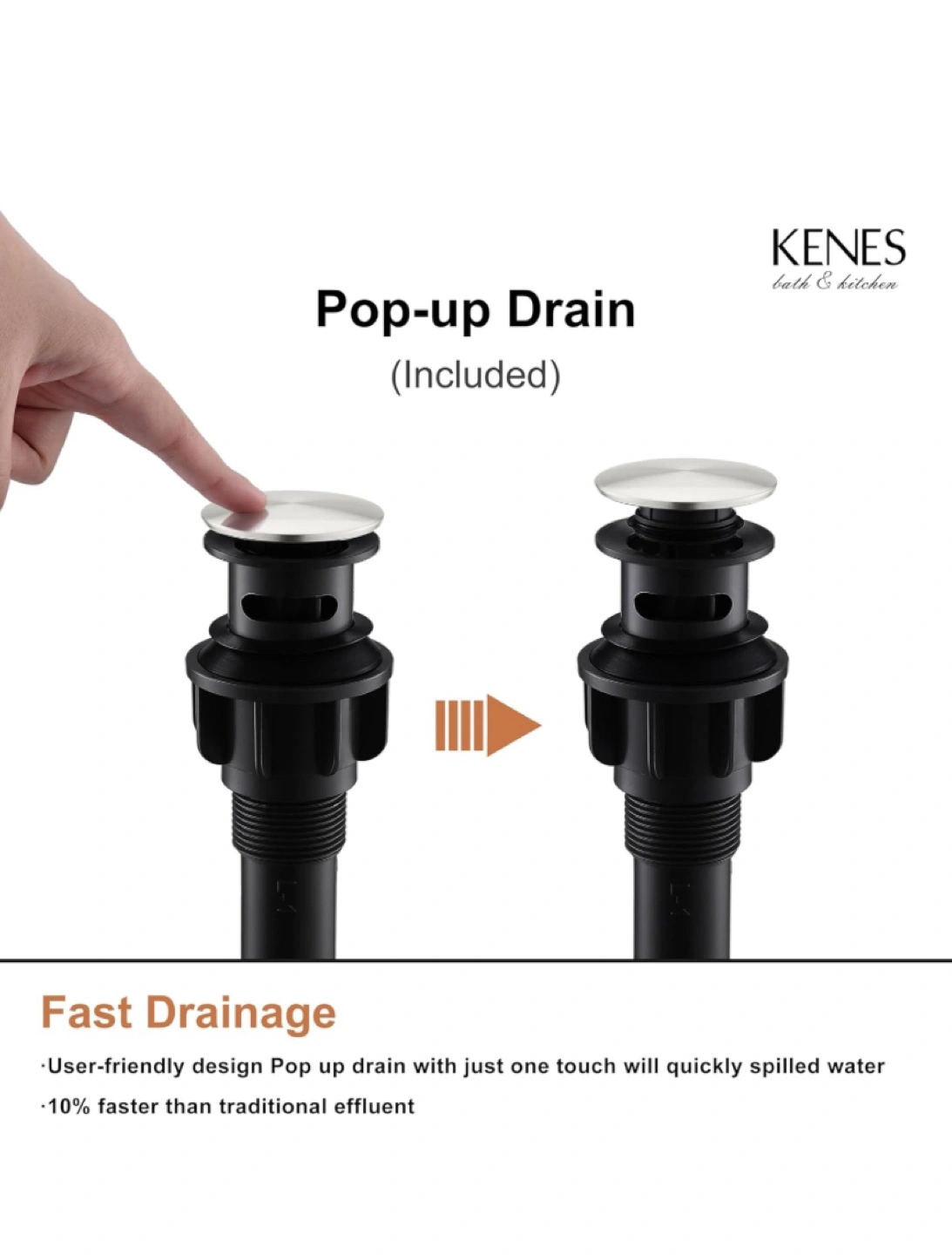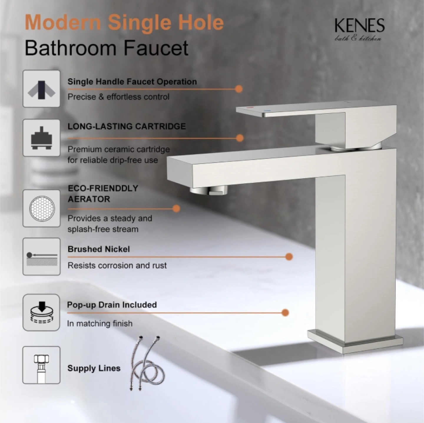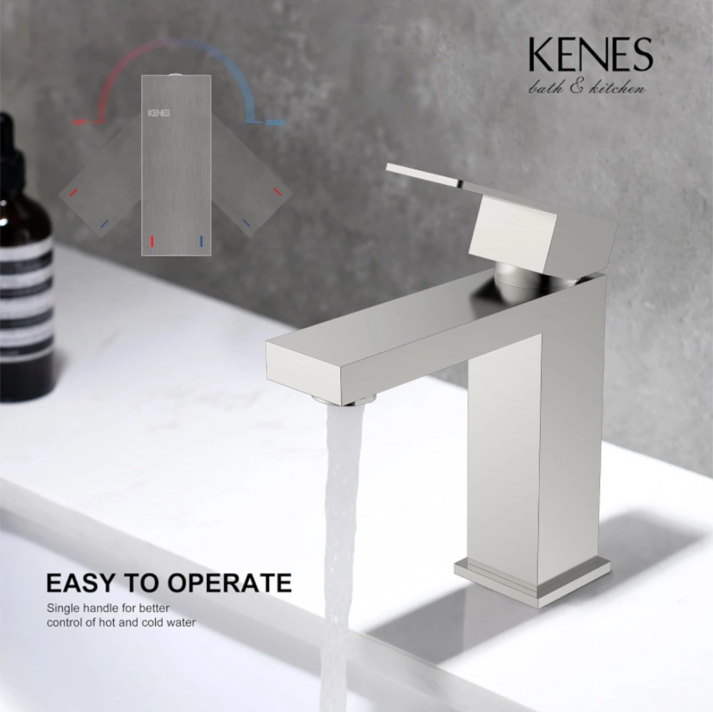 KENES Modern Single Hole Bathroom Faucet - Brushed Nickel