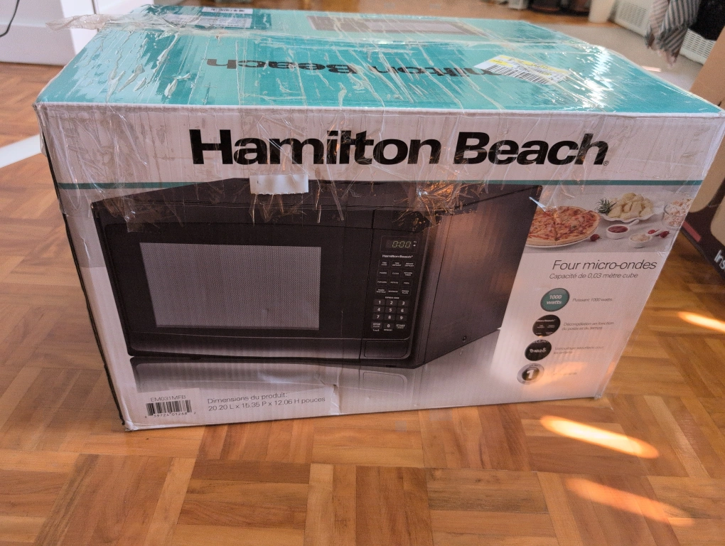 Selling a Hamilton Beach microwave oven in good condition! It's a 1.1 cu ft model. The box is included, making it easy to transport. Perfect for small spaces or anyone needing a reliable microwave for everyday use.