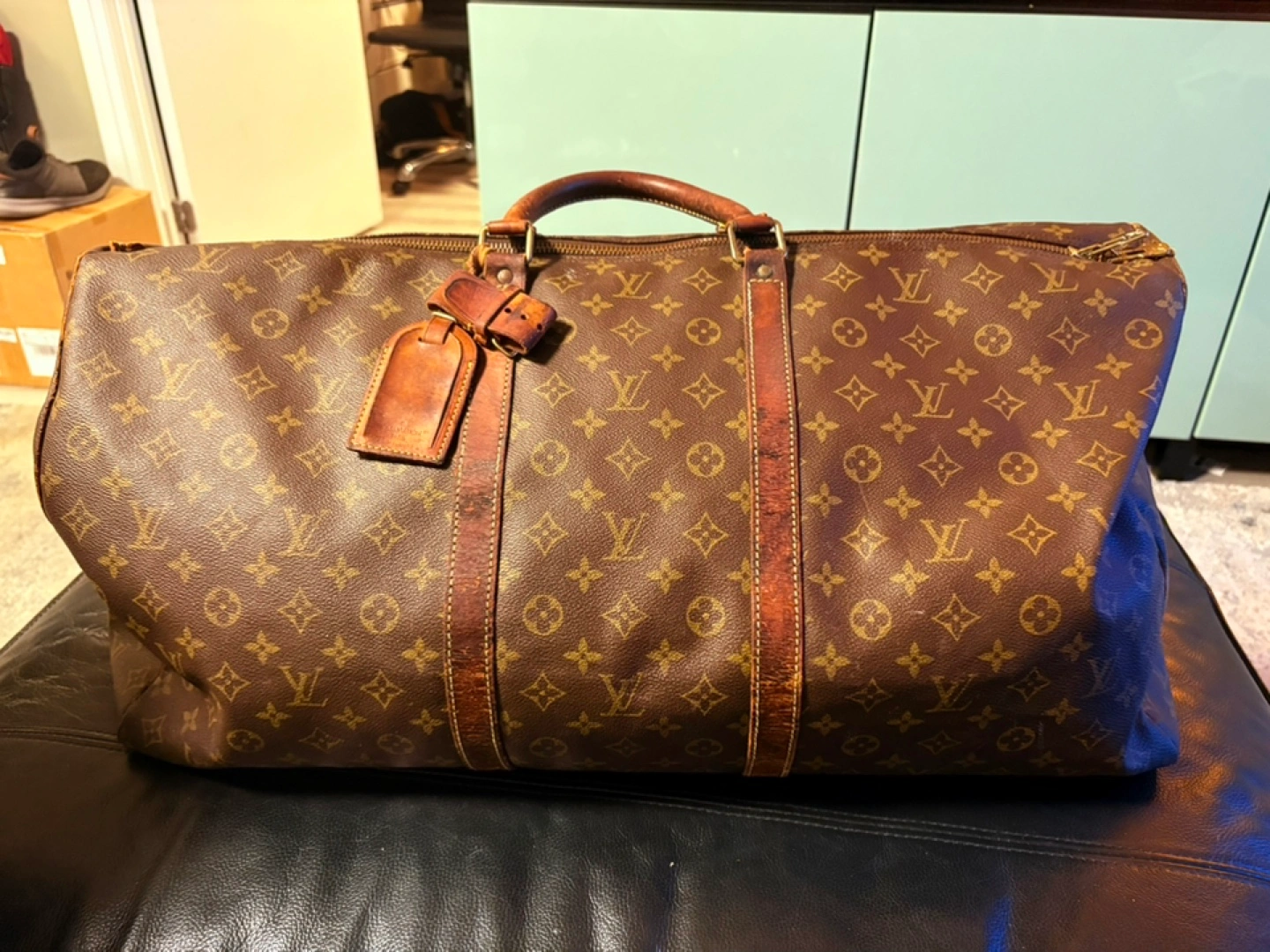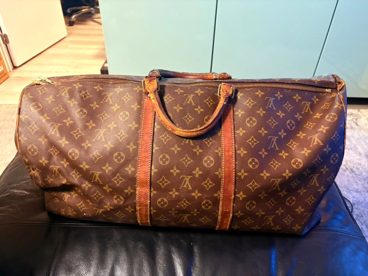 Selling a Louis Vuitton Keepall 55 in the classic monogram canvas. It's a great travel bag! Please note that there are signs of wear on the handles and leather trim, as shown in the photos. Still lots of life left in this iconic piece!