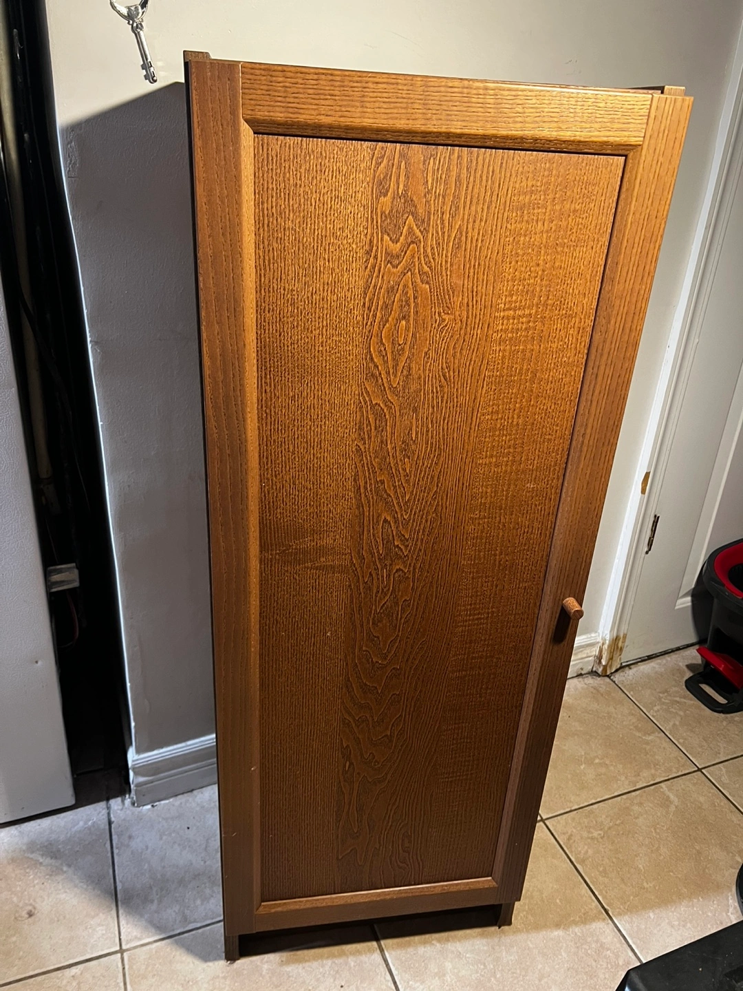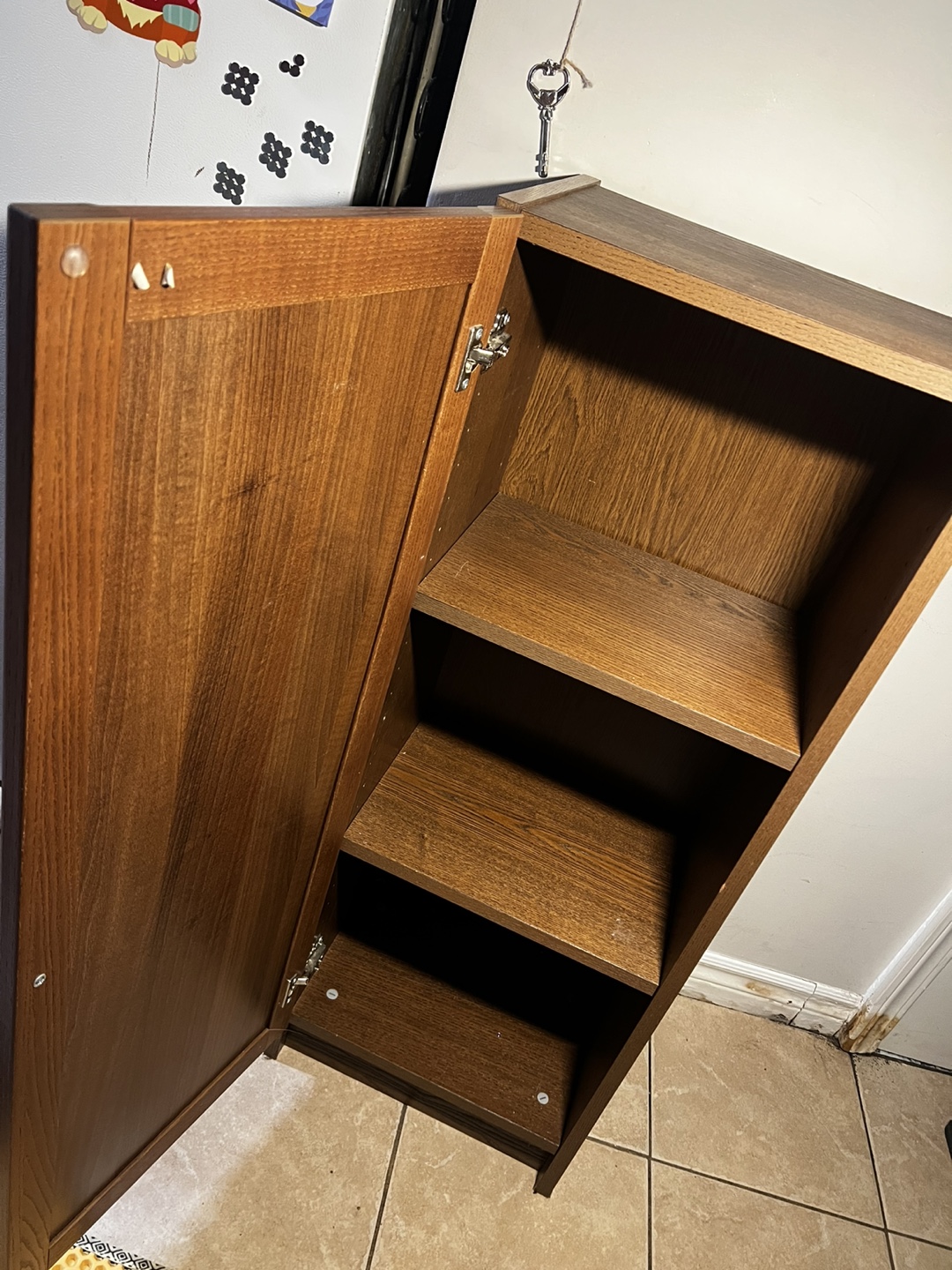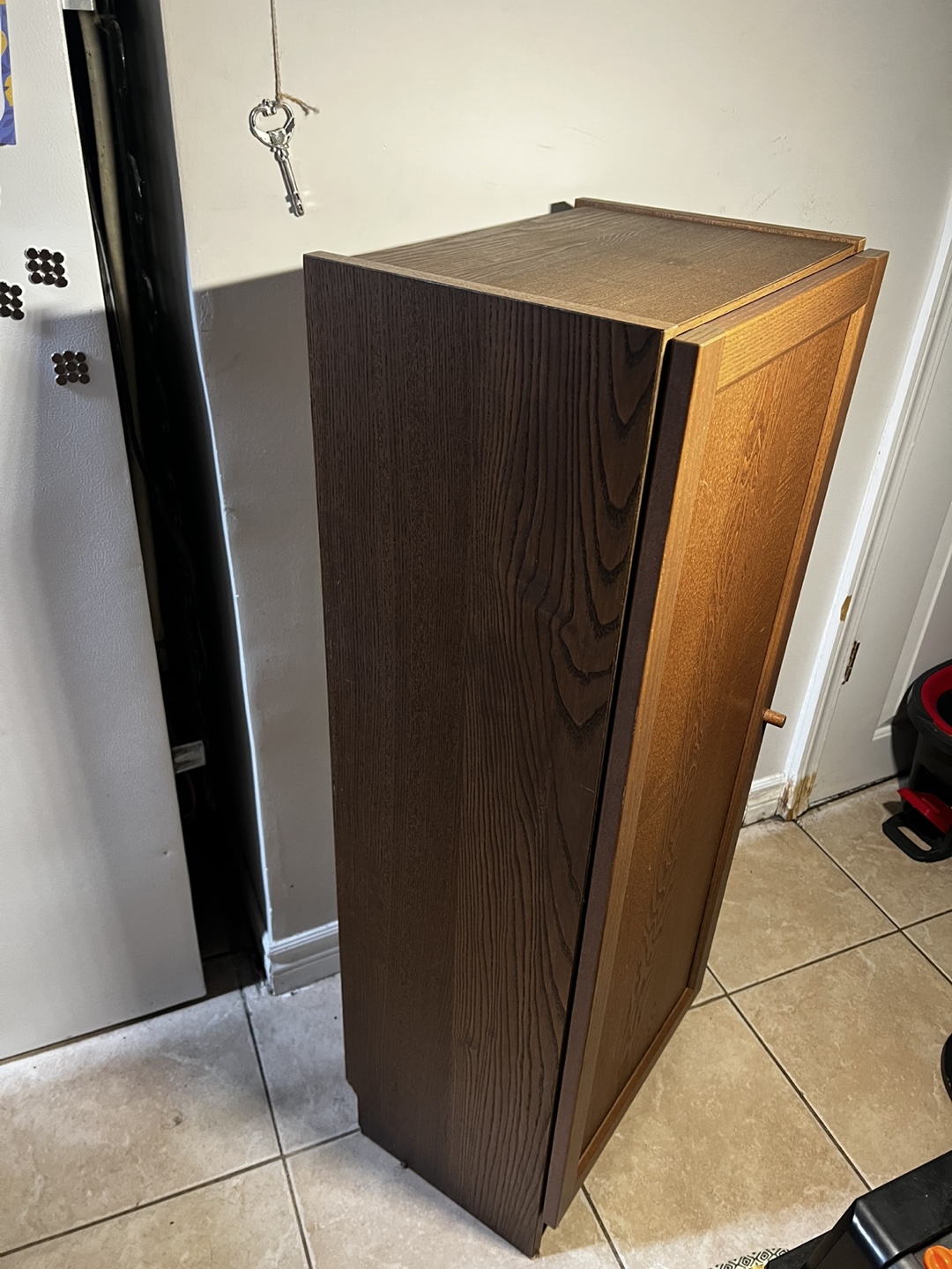 Selling a brown wooden cabinet with interior shelves. It's perfect for adding some extra storage to any room in your home. It is in good condition and ready for a new home!