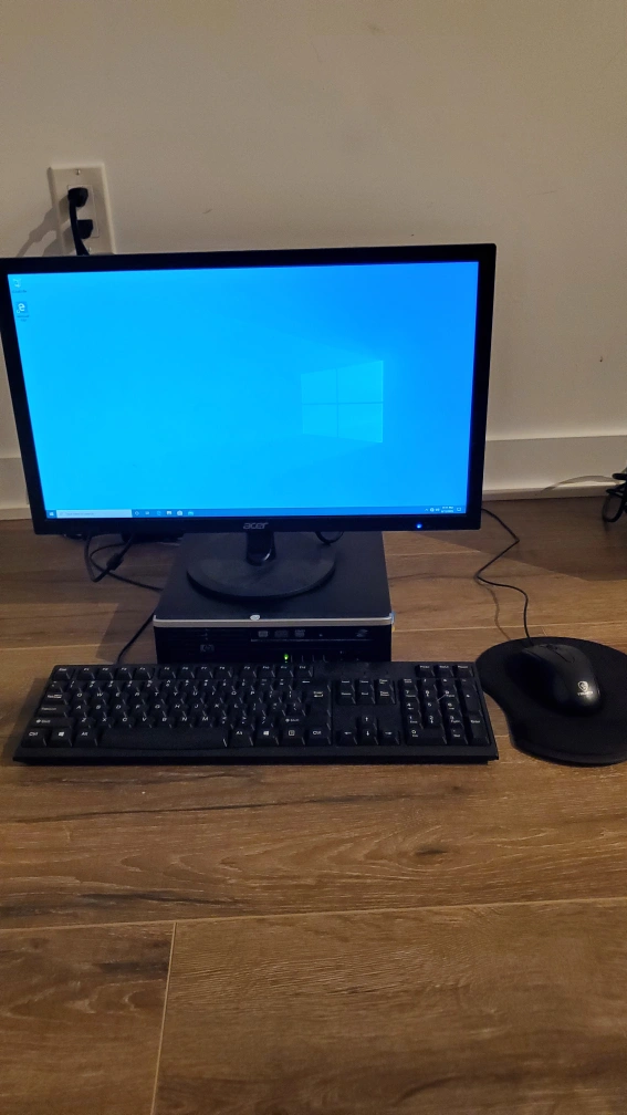 Full PC Setup with Windows 10 installed and has been factory reset. Model is HP Compaq 8000 Elite Ultra-Slim Desktop. This comes with an Intel CORE VPro Inside processor and everything works perfectly and runs like new. Comes with: - Desktop with AC Power Cable - 250GB HDD - 4GB Ram - 22" Monitor with all cables - Keyboard - Mouse - Mouse Pad I have 3 setups exactly like this. Pickup only.