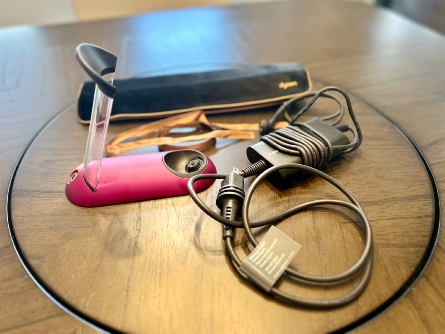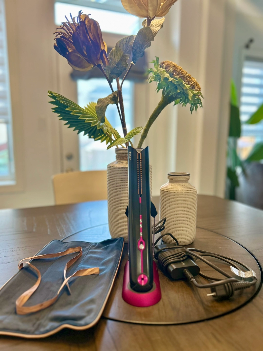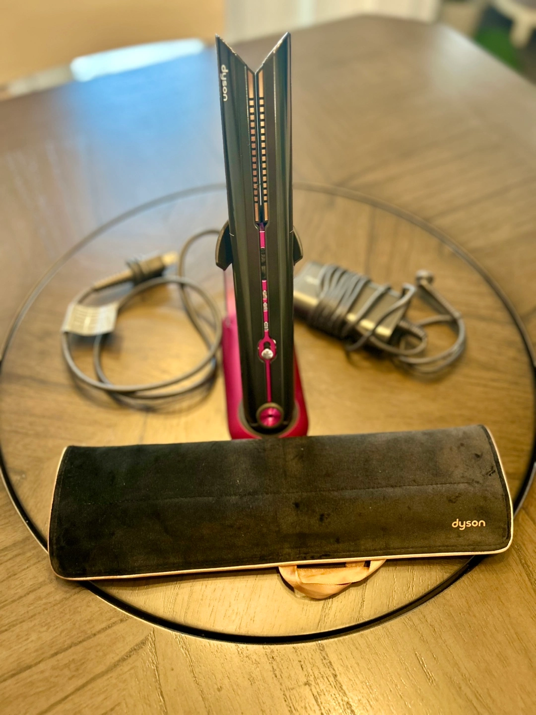 Selling a Dyson Corrale hair straightener in black and fuchsia! It's in great condition and comes with its charging dock and travel pouch. A great tool for styling your hair!