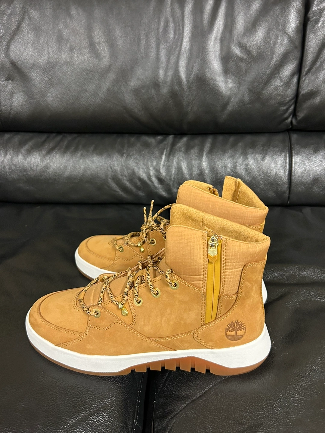 These Timberland boots are brand new and ready for a new home! They are men’s size 9and feature a stylish design with a side zipper. Perfect for adding a touch of ruggedness to your wardrobe!