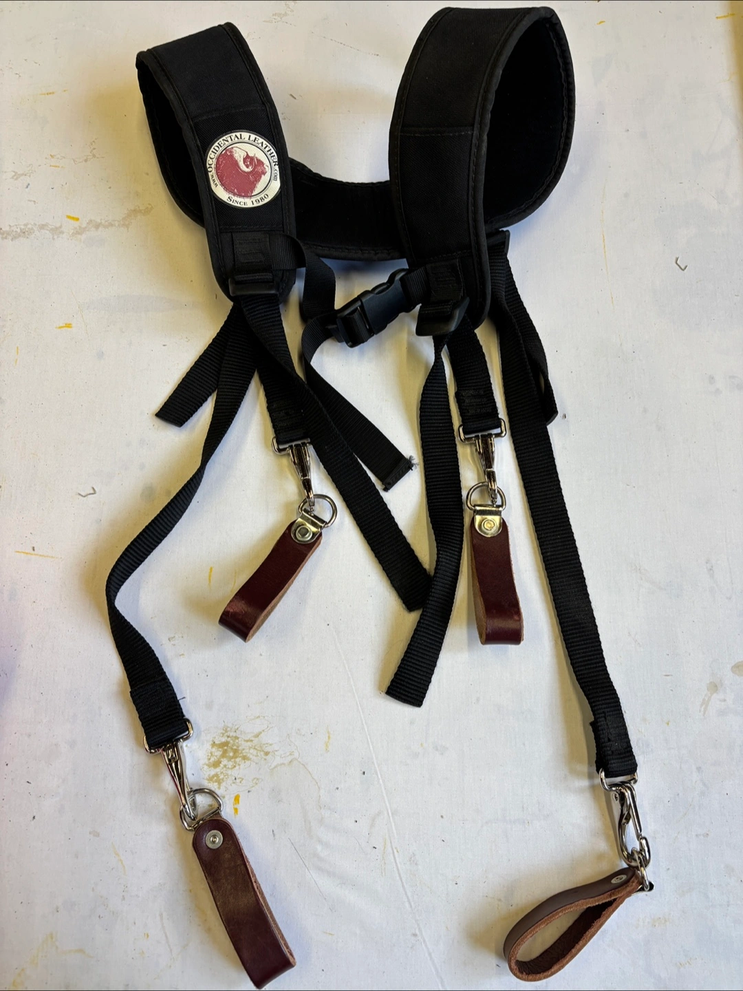 Occidental construction suspenders. Worn a couple times, basically brand new.