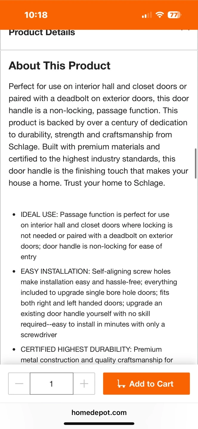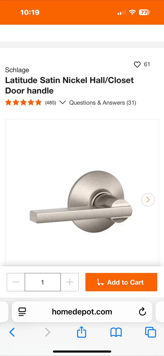 Selling a Schlage Latitude Satin Nickel Hall/Closet Door Handle. It's new and still in its original packaging. Perfect for upgrading your doors!