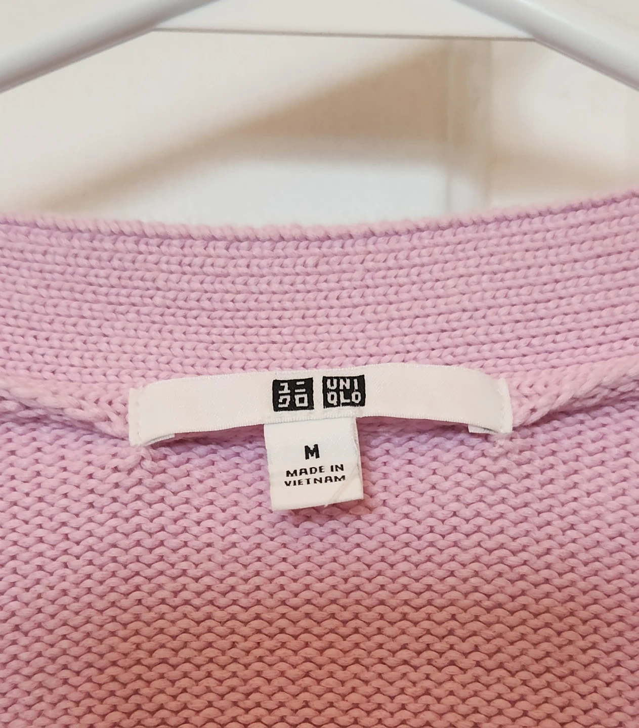 Selling a cute pink cardigan from Uniqlo! It's a size medium and in great condition. Perfect for layering or wearing on its own