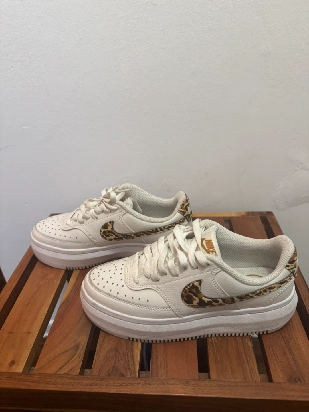 Selling a pair of Nike Court Vision Alta sneakers with a fun leopard print accent! These are a women's size US 7. They're in great shape and ready for a new home. Perfect for adding a little something extra to your everyday style. Worn twice! Bought for $130, selling as bought a size too small.