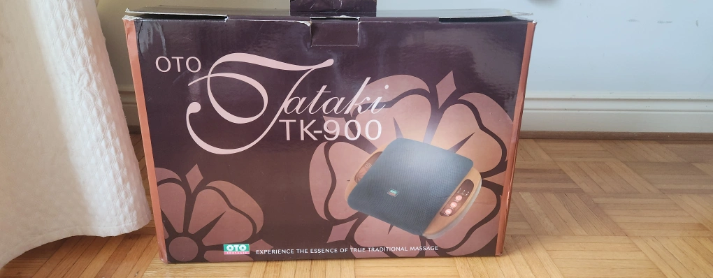 Selling an OTO Tataki TK-900 massage cushion. It has settings for mild, medium, and strong intensity, and different modes for a customized massage experience. The box is included!