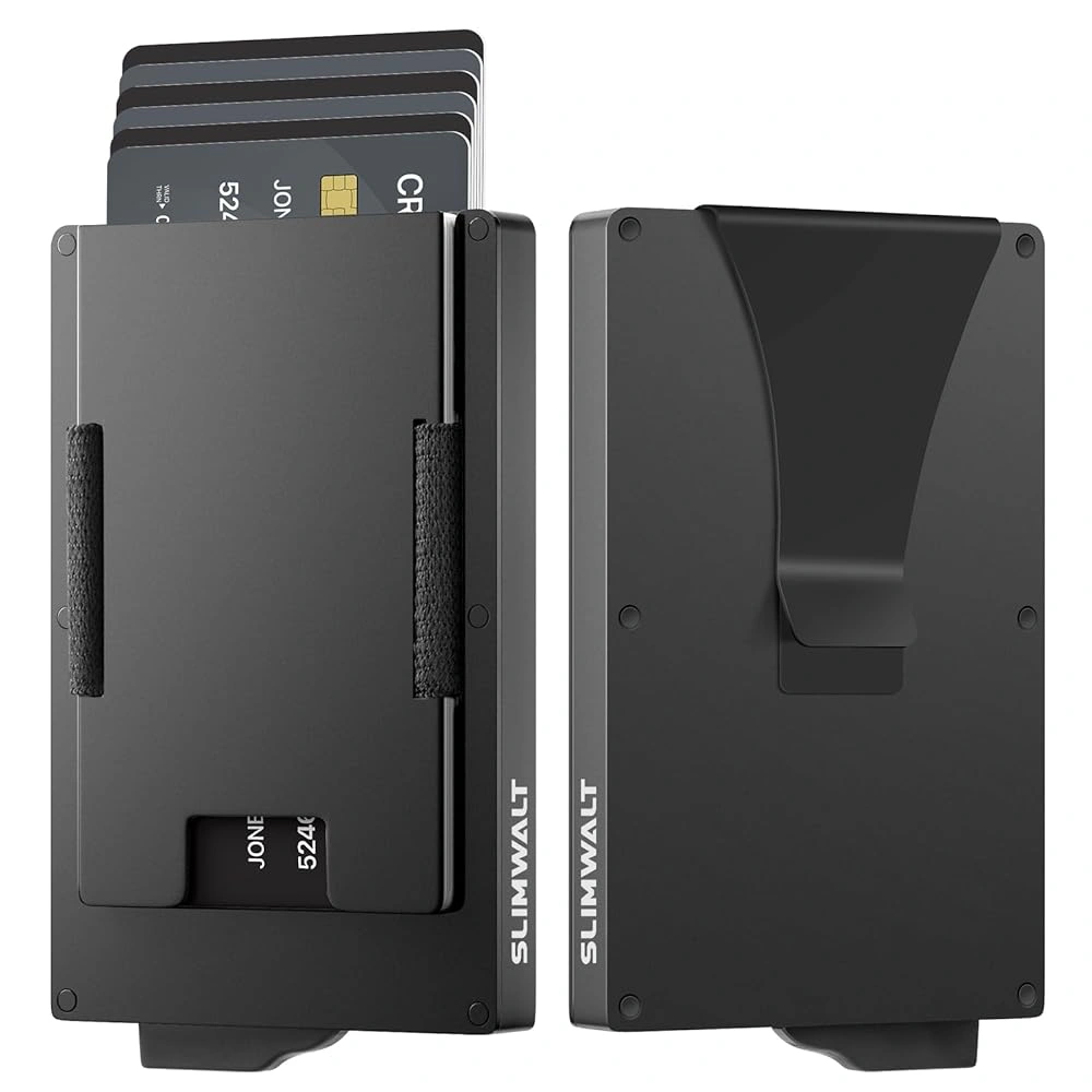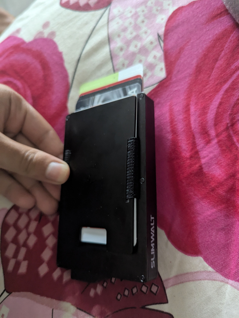Selling a Slimwalt minimalist wallet. It's an aluminum metal wallet designed to be slim and lightweight. Perfect for carrying your essential cards in a compact way