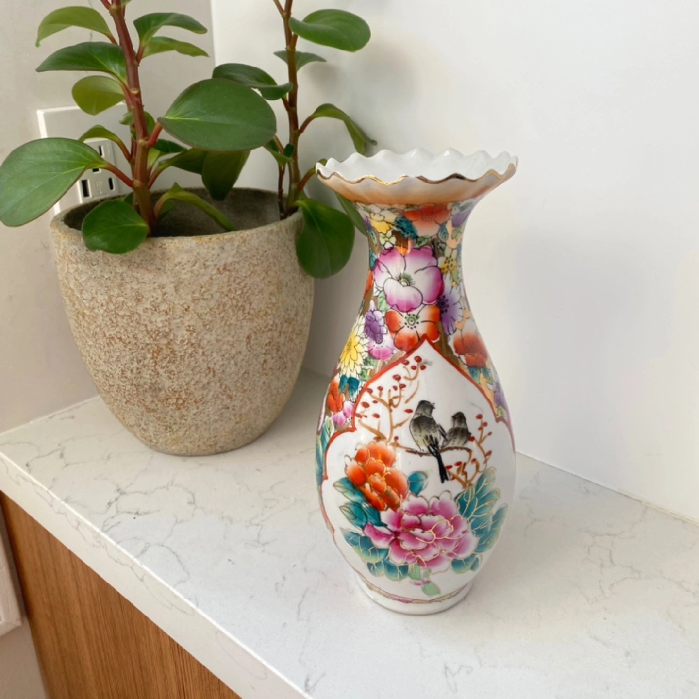 Vintage Floral Vase with Bird Design