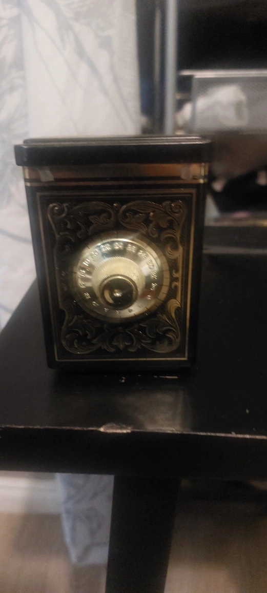 Selling a vintage-style decorative safe box. It has a combination dial on the front. It's a unique piece for adding a touch of old-world charm to your space
