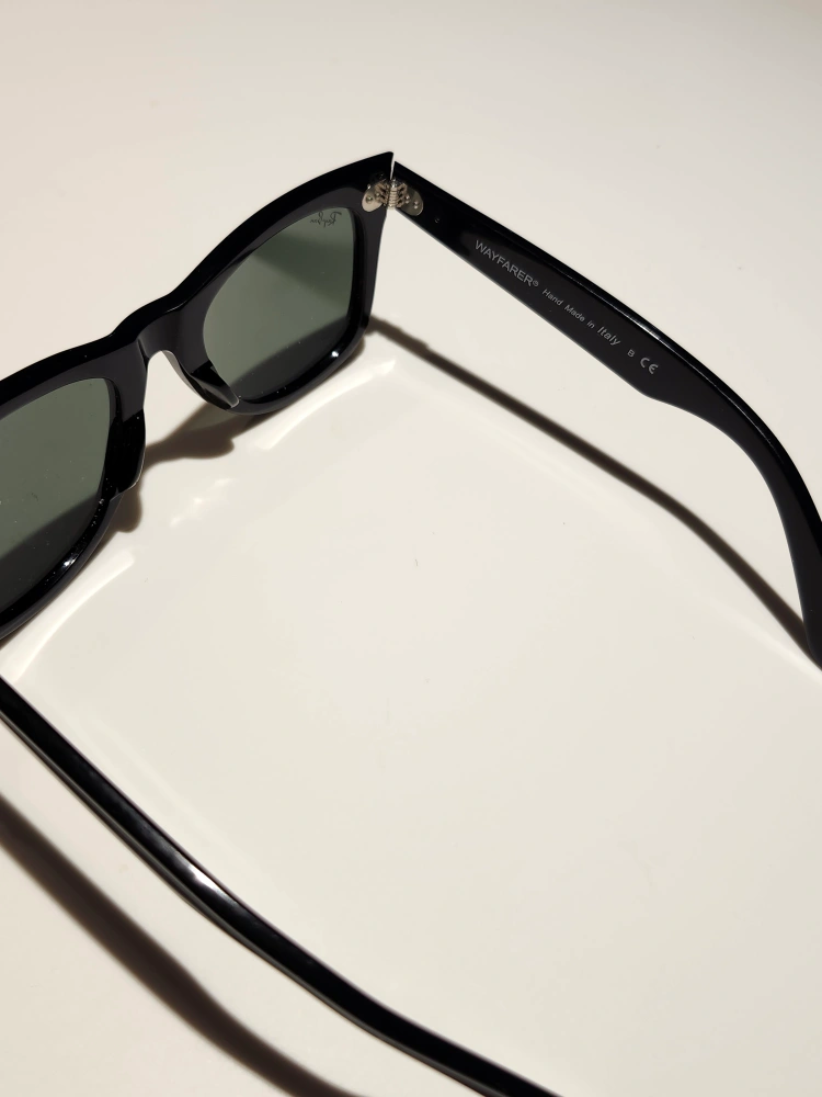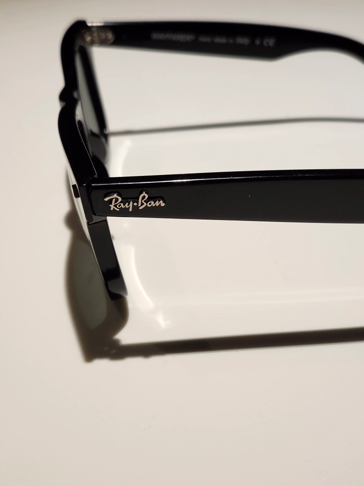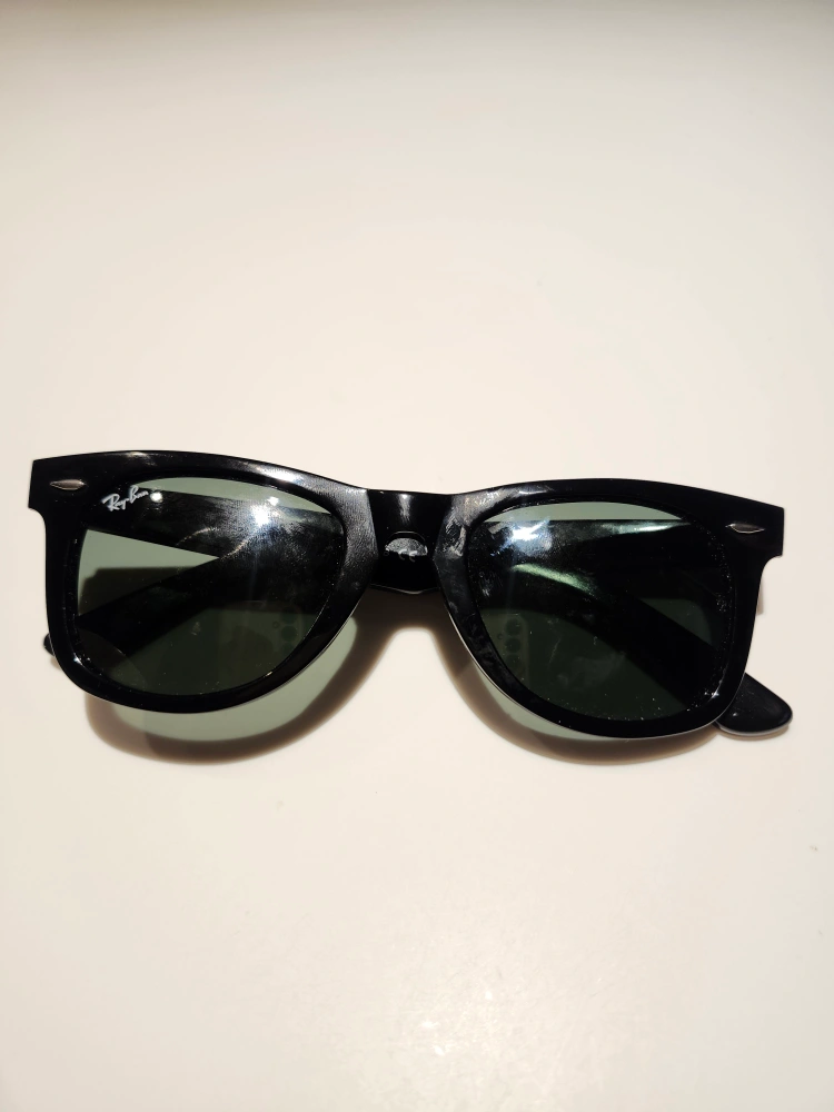 Selling a pair of classic Ray-Ban Wayfarer sunglasses in black. They're in great condition, no flaws. unfortunately lost the box after moving. lenses are slightly green tinted.