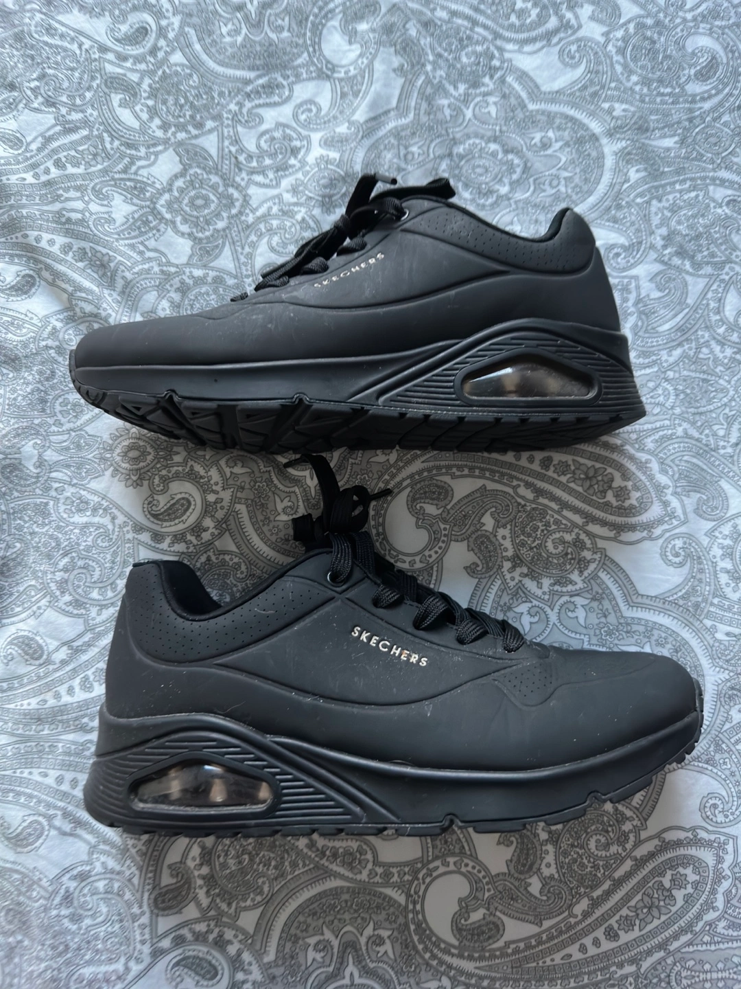 Selling a pair of Skechers Uno Stand On Air sneakers in black! They're a women's size 9 and in great condition. Super comfy with the air-cooled memory foam and wide fit
