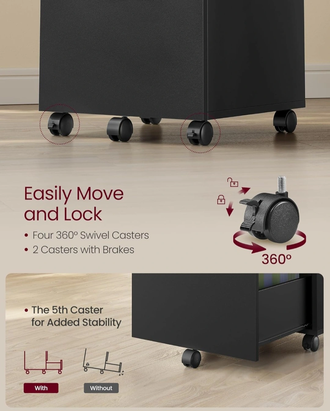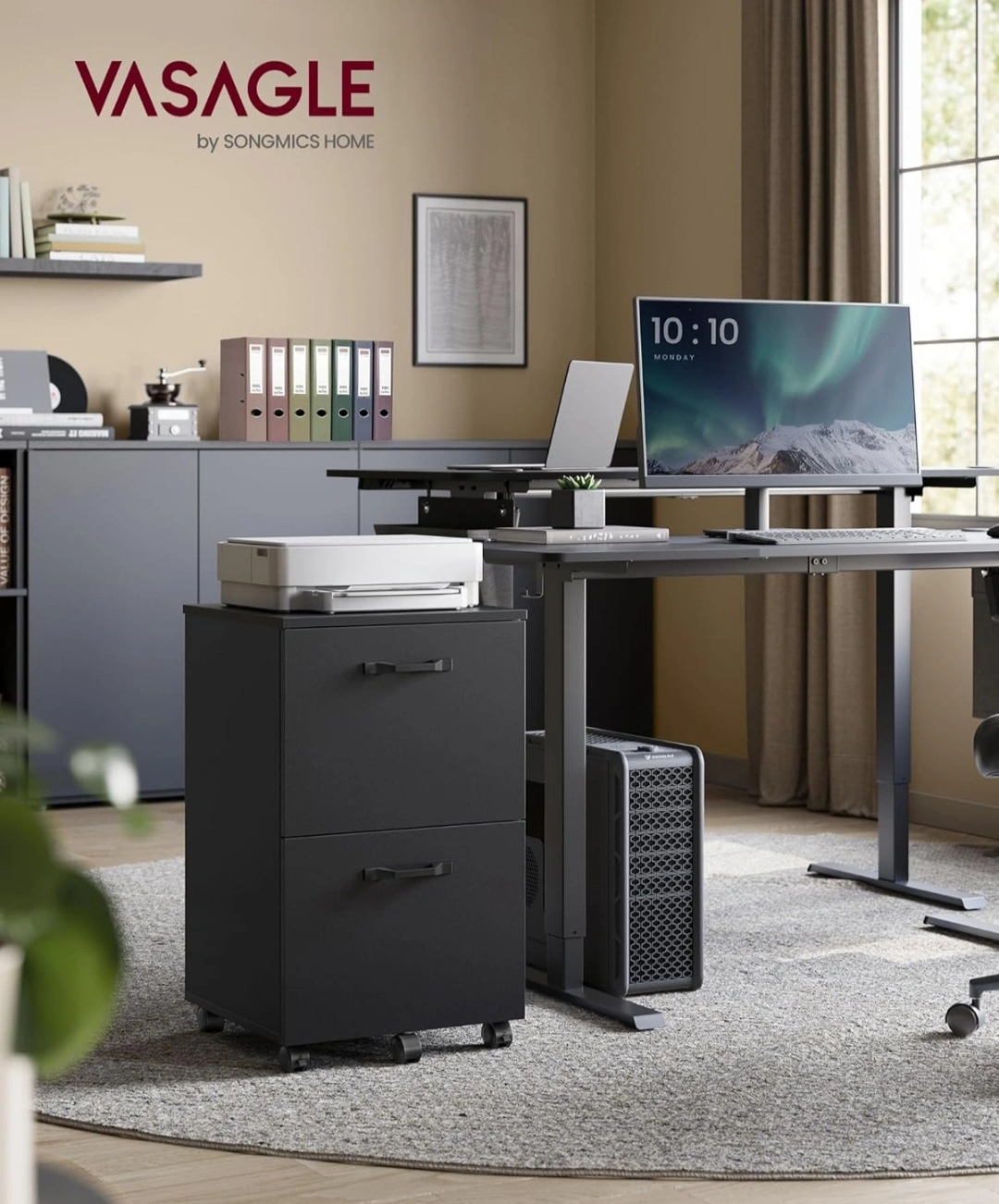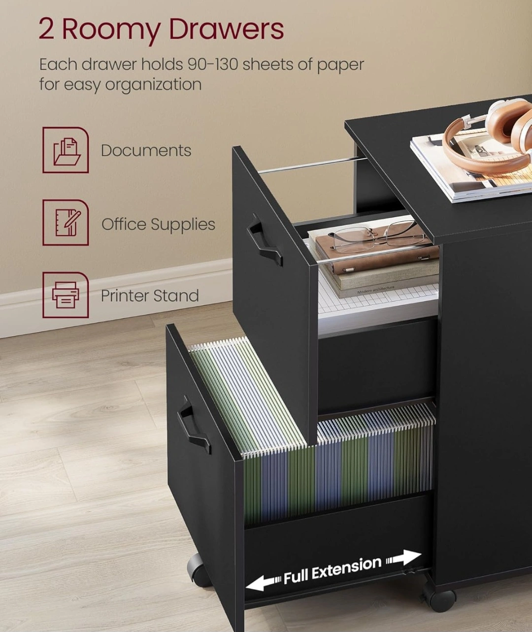 83VASAGLE 2-Drawer File Cabinet, Small Rolling Filing Cabinet for Home Office, Printer Stand, for A4, Letter-Size Documents, 15.7 x 16.5 x 27.6 Inches, Matte Black UOFC040B16. (155)