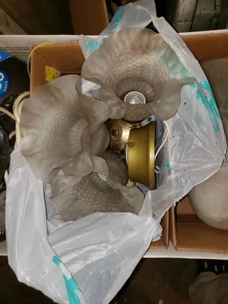 Selling a hanging light fixture. It comes with a decorative glass shade and the necessary hardware for installation. It's in good condition and ready to brighten up your space!