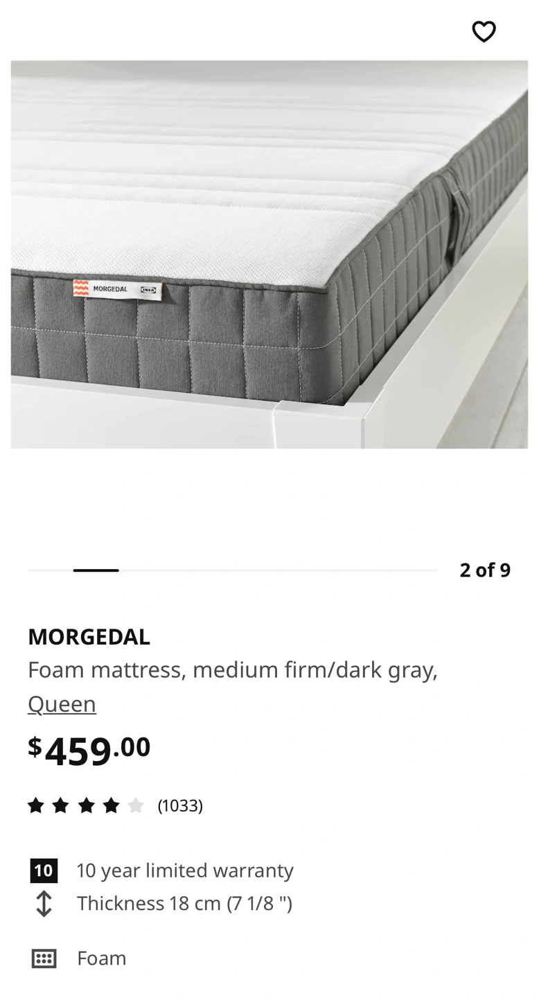 IKEA Morgedal Queen size foam mattress, gray/white, medium firm