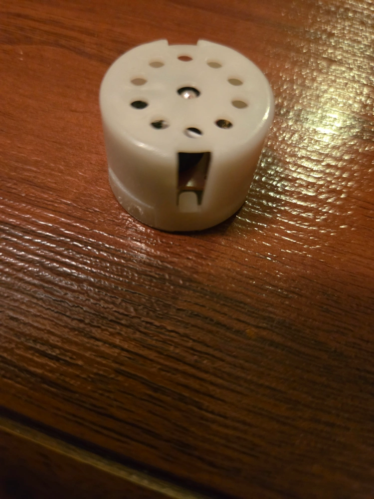 Edit: Thanks to a helpful user, I've been told that this is a spool you wind thread on for a sewing machine!! Another friend told me it's called a bobbin!! Still up for grabs :) OG post: "Anyone know what this is? (Unknown White Plastic Part)" I came across this white plastic part and don't recall what it's from. It has several holes and a slot. It's in good condition and could be useful for various projects or repairs. Please take a look at the photos to see the details!
