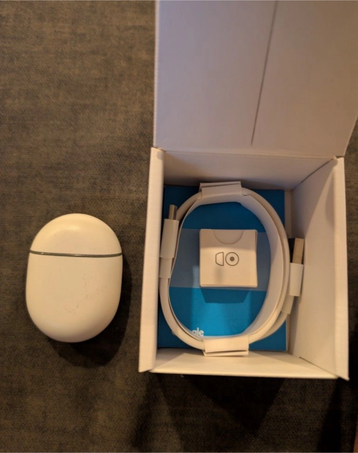 Selling a pair of Google Pixel Buds A-Series in white! They come with the original box and included components like the charger and instructions. These earbuds are known for being lightweight and portable